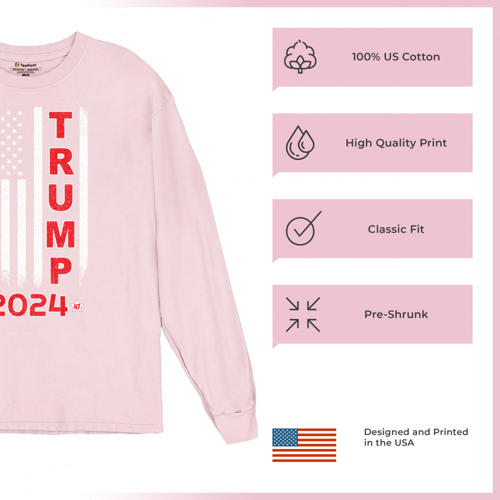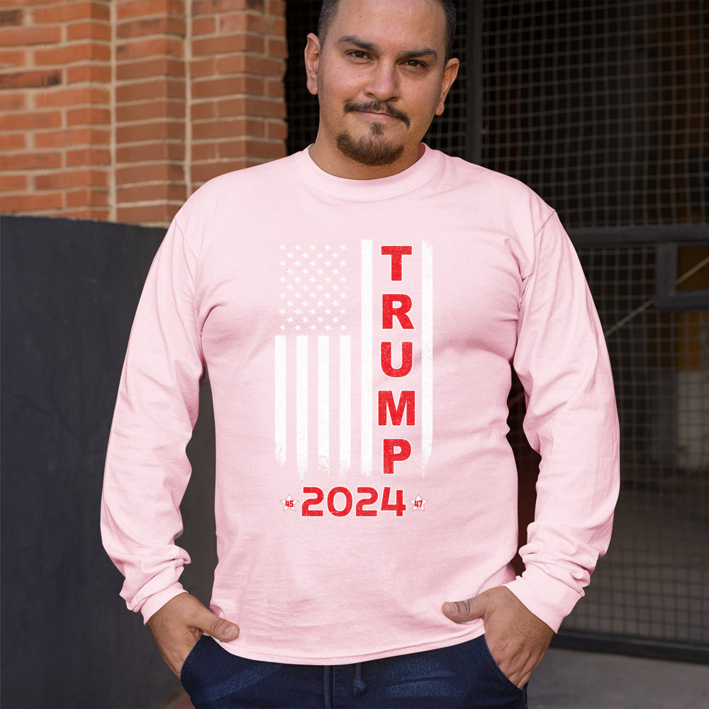 Gear up for the next chapter in American history with our Trump American Flag 2024 design, a bold statement of unwavering support for America First values. Featuring the iconic American flag intertwined with a vintage Trump silhouette, this design is a mu