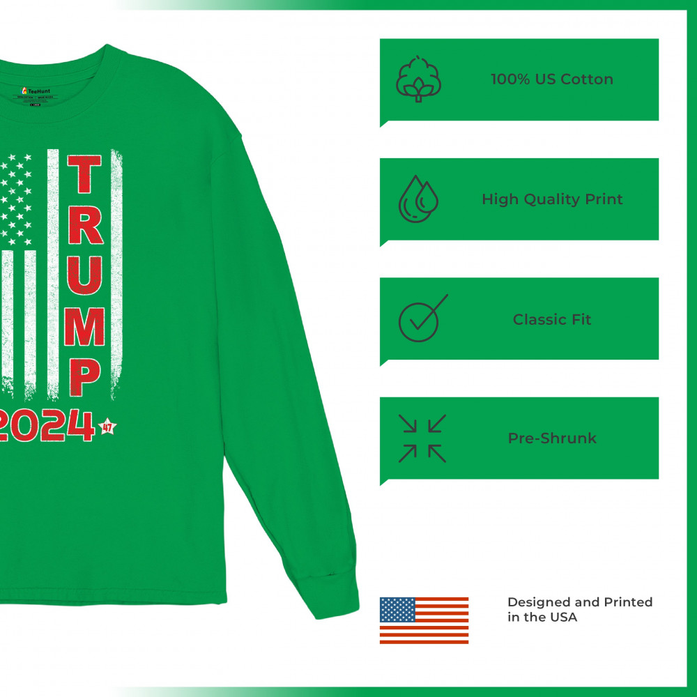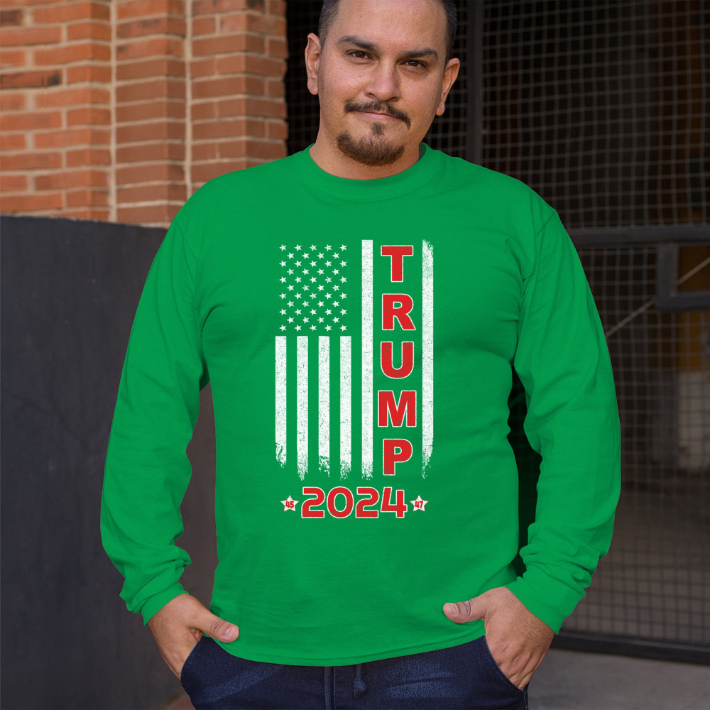 Gear up for the next chapter in American history with our Trump American Flag 2024 design, a bold statement of unwavering support for America First values. Featuring the iconic American flag intertwined with a vintage Trump silhouette, this design is a mu