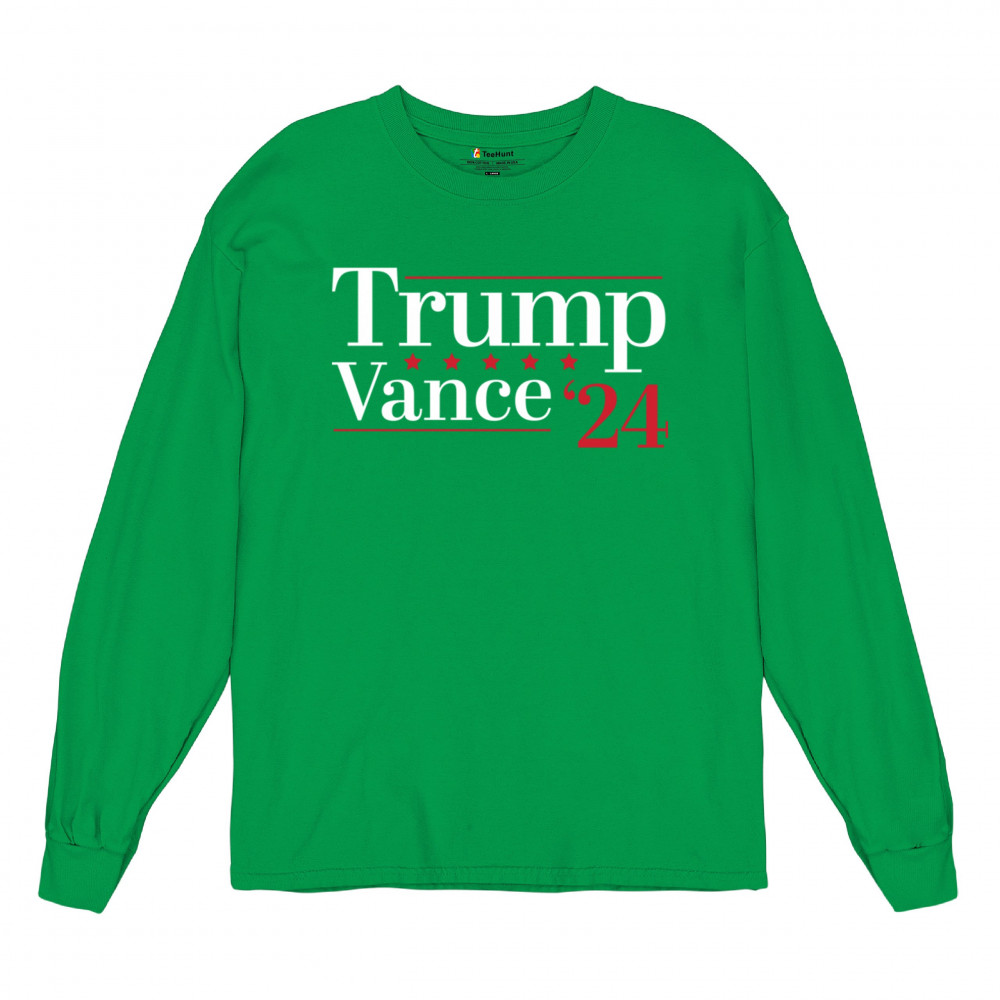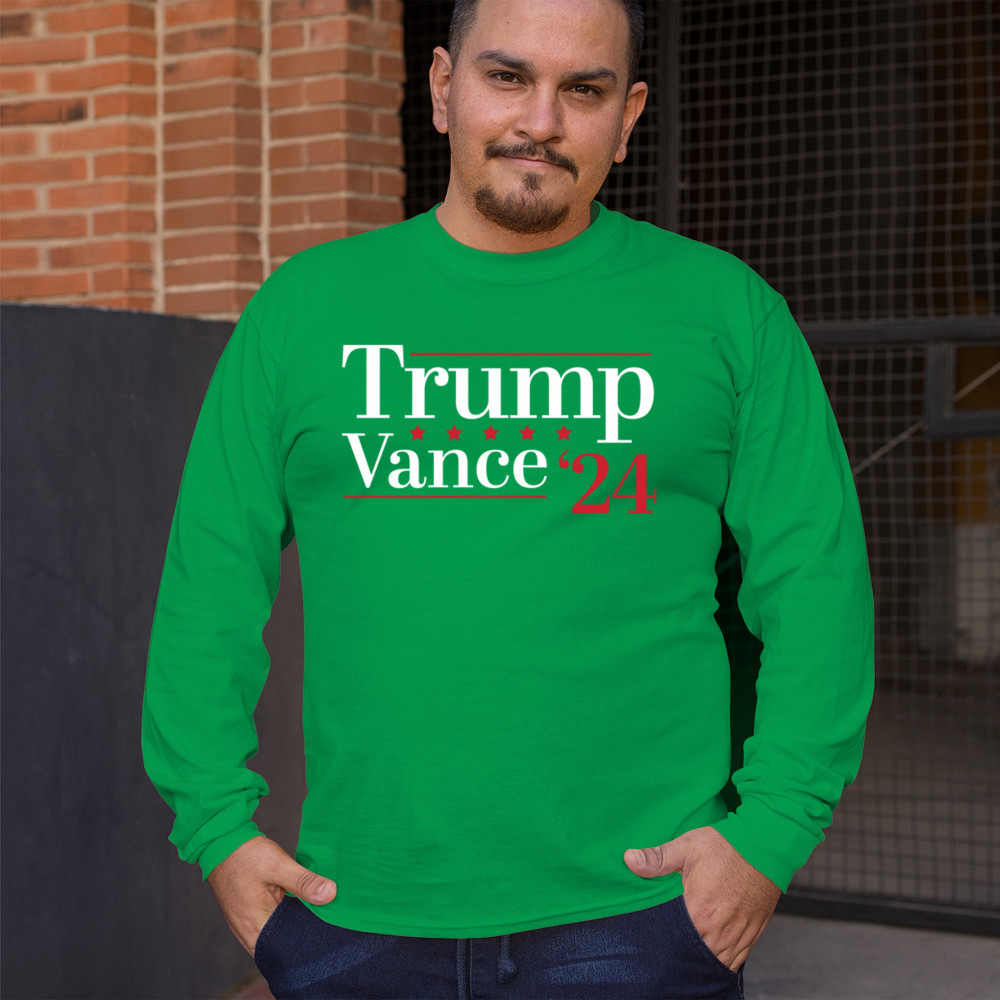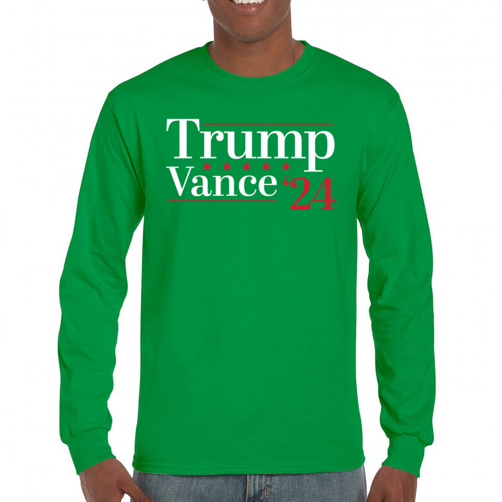 Support Trump-Vance 2024 with this bold design featuring the "Make America Great Again" slogan and the American flag. Perfect for rallies and conservative events.