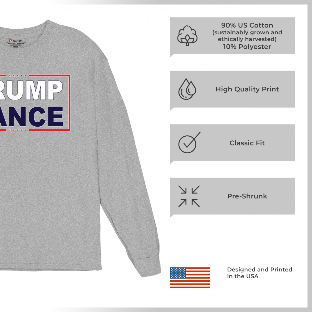 Support Trump Vance 2024 with this bold, high-quality design. Perfect for rallies and everyday wear. Show your patriotic pride!
