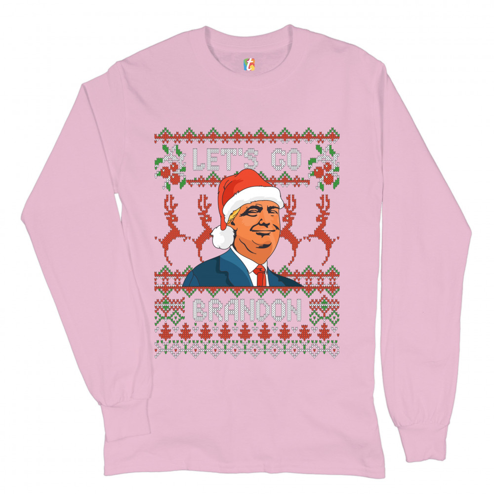 DONALD TRUMP LET'S GO BRANDON long sleeve t-shirt christmas xmas ugly sweater pink