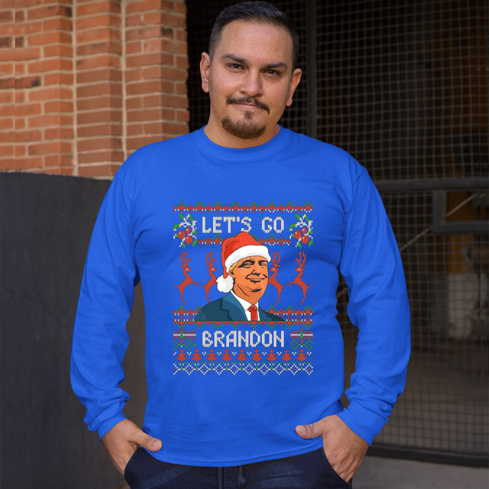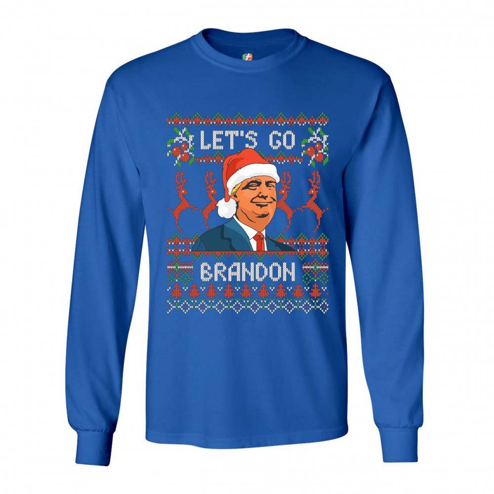 DONALD TRUMP LET'S GO BRANDON long sleeve t-shirt christmas xmas ugly sweater royal blue
