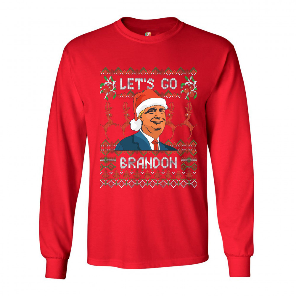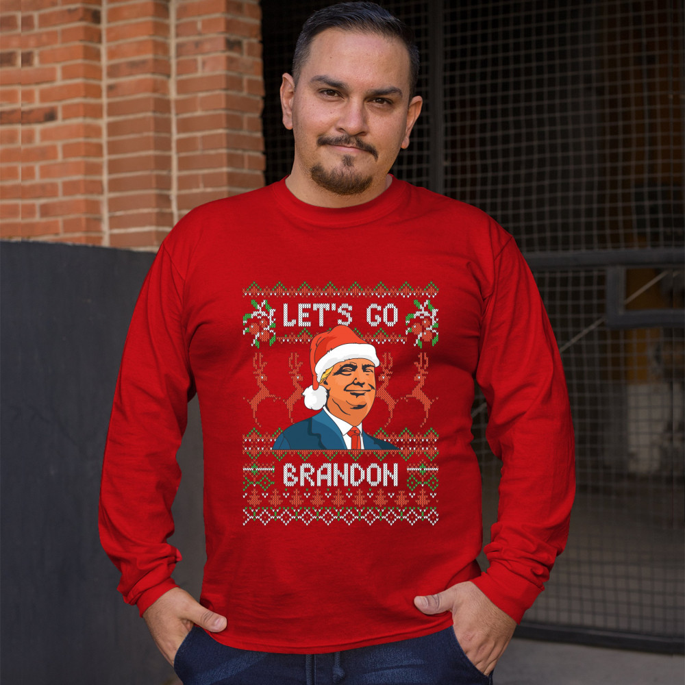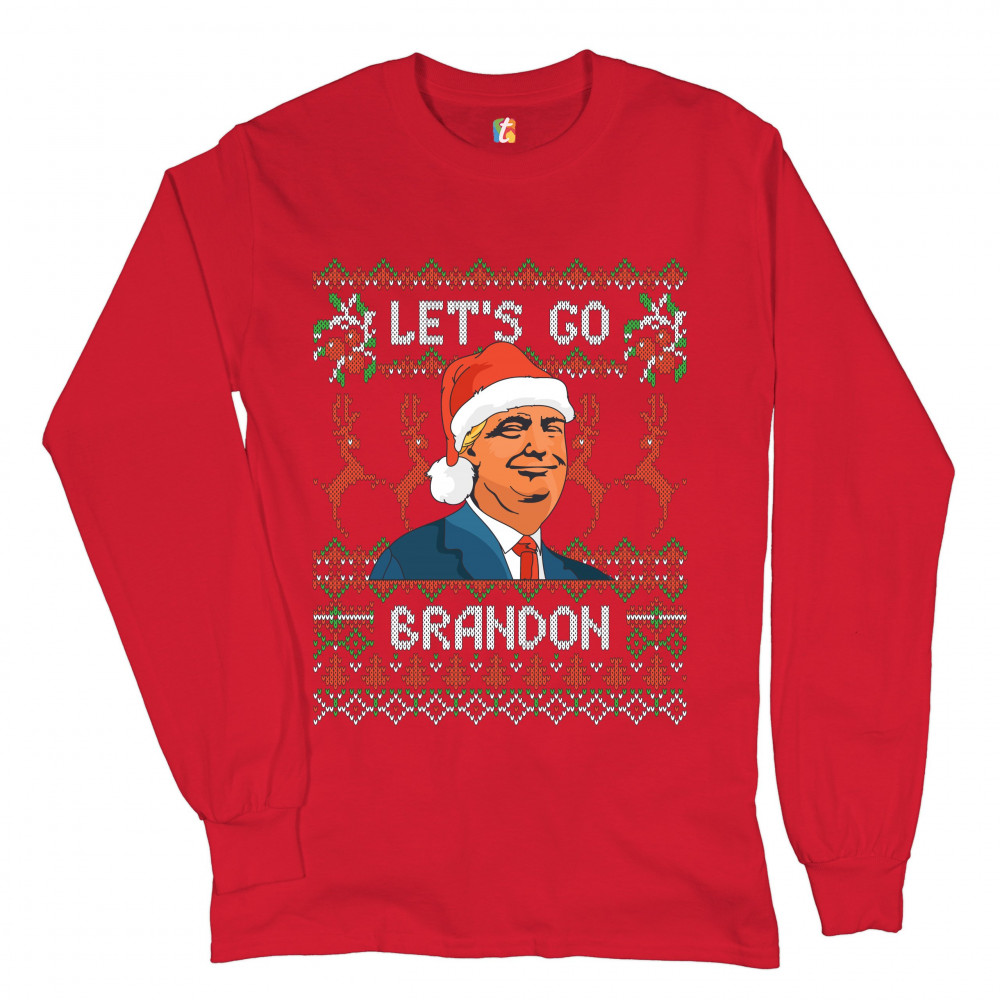 DONALD TRUMP LET'S GO BRANDON long sleeve t-shirt christmas xmas ugly sweater red