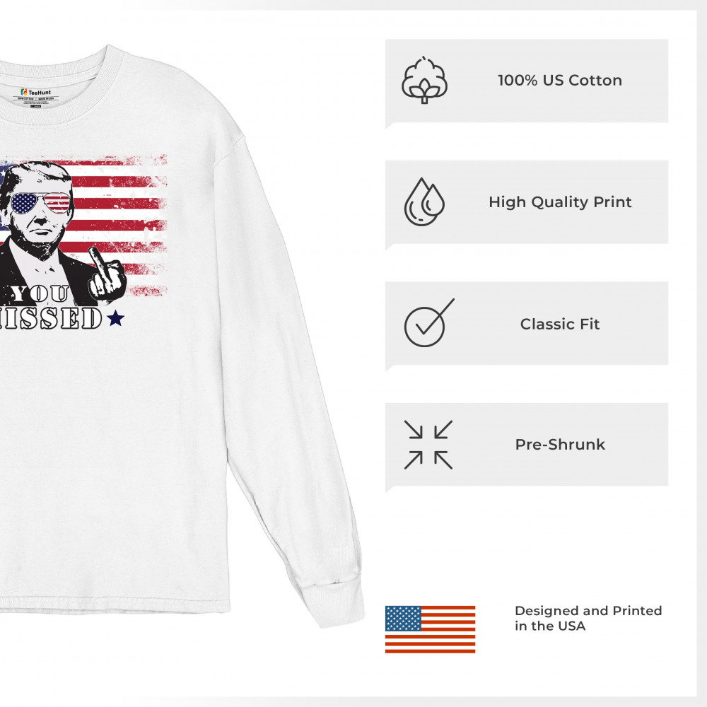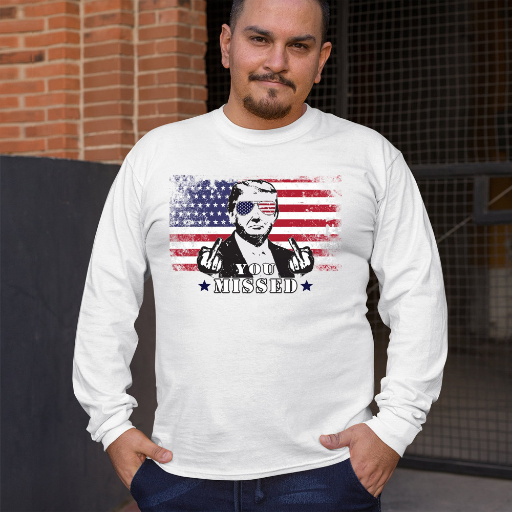 Embrace the spirit of patriotism and resilience with this powerful design showcasing Donald Trump in bold American flag sunglasses. Ideal for Trump rallies, political gatherings, and other patriotic events, this graphic is perfect for conservatives and Republicans alike. Show your unwavering support for Trump and the belief in making America great again. This striking design is not only a great addition to your wardrobe but also an excellent gift for fellow supporters. Wear it with pride and join the movement today.