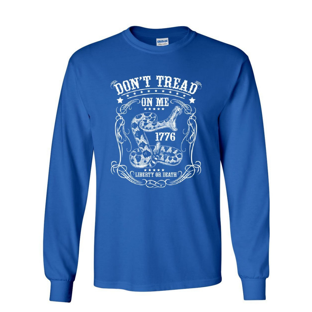 DON'T TREAD ON ME 1776 don't tread on me long sleeve t-shirt liberty or death gadsden viper snake tee royal blue