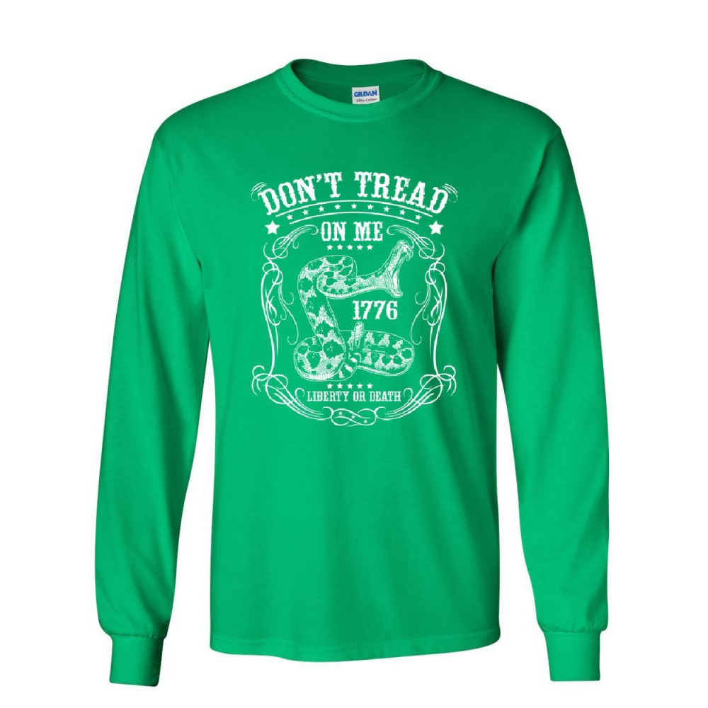 DON'T TREAD ON ME 1776 don't tread on me long sleeve t-shirt liberty or death gadsden viper snake tee green