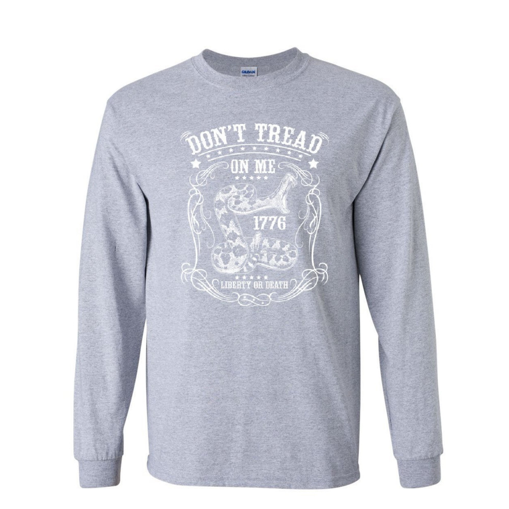 DON'T TREAD ON ME 1776 don't tread on me long sleeve t-shirt liberty or death gadsden viper snake tee gray