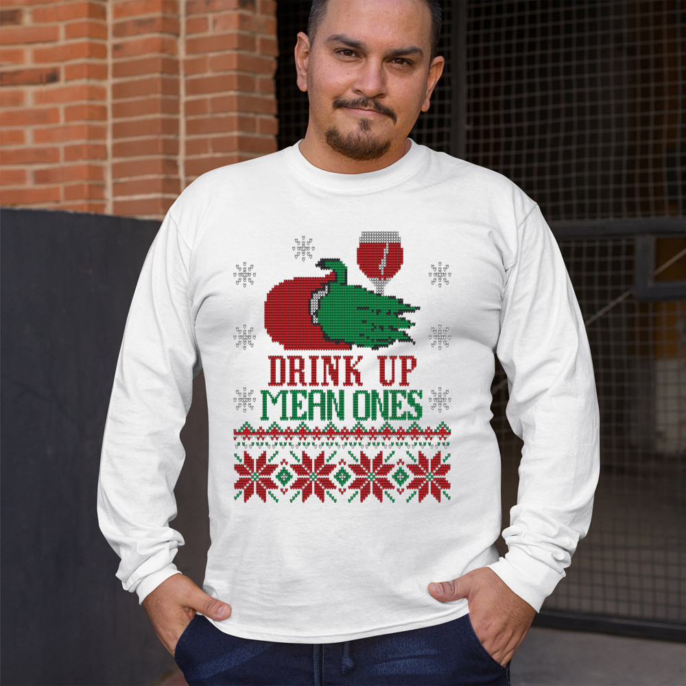 Get festive with this funny Christmas drinking sweater design, perfect for holiday parties, ugly sweater contests, and wine lovers. Cheers to the season!
