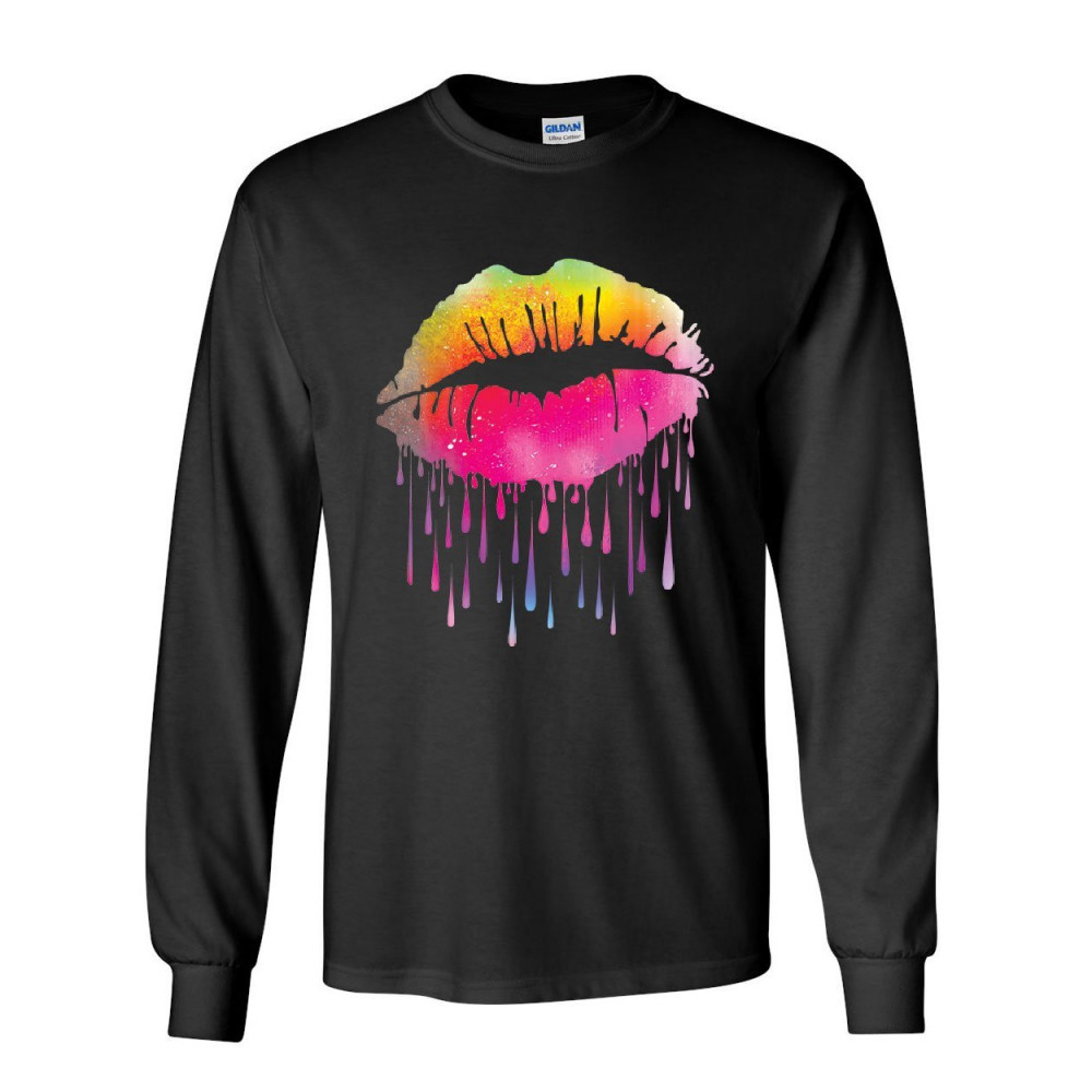 DRIPPING NEON LIPS long sleeve t-shirt lips like sugar kiss love sexy melt tee black