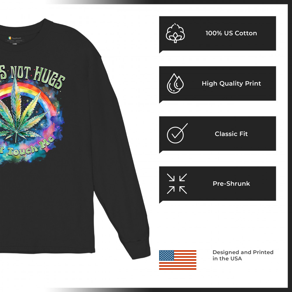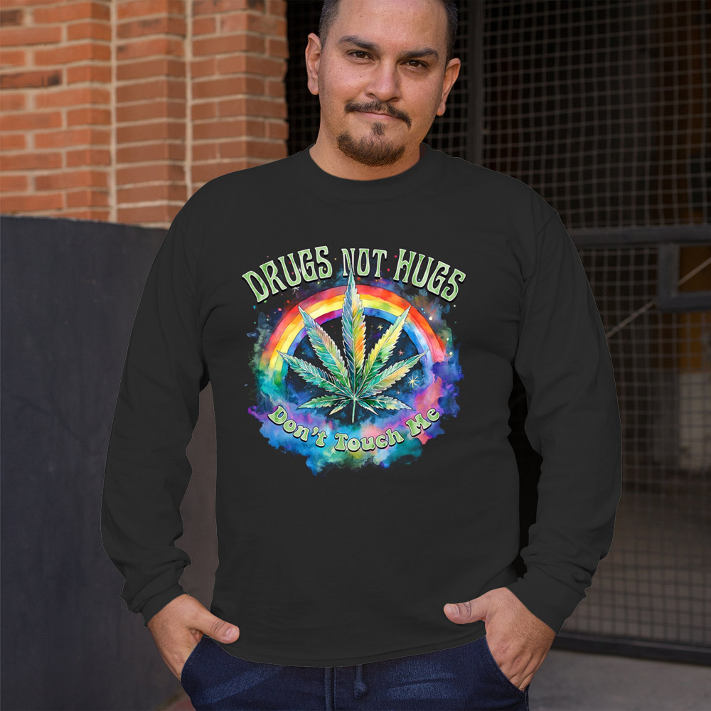 This bold marijuana leaf design blends psychedelic colors with a rainbow flair to create a loud, colorful statement. Great for weed lovers who value space, it's the perfect look for expressing antisocial vibes. Whether you're at festivals, smokeouts, or chilling solo, this cannabis design mixes humor, independence, and stoner culture with unapologetic style.