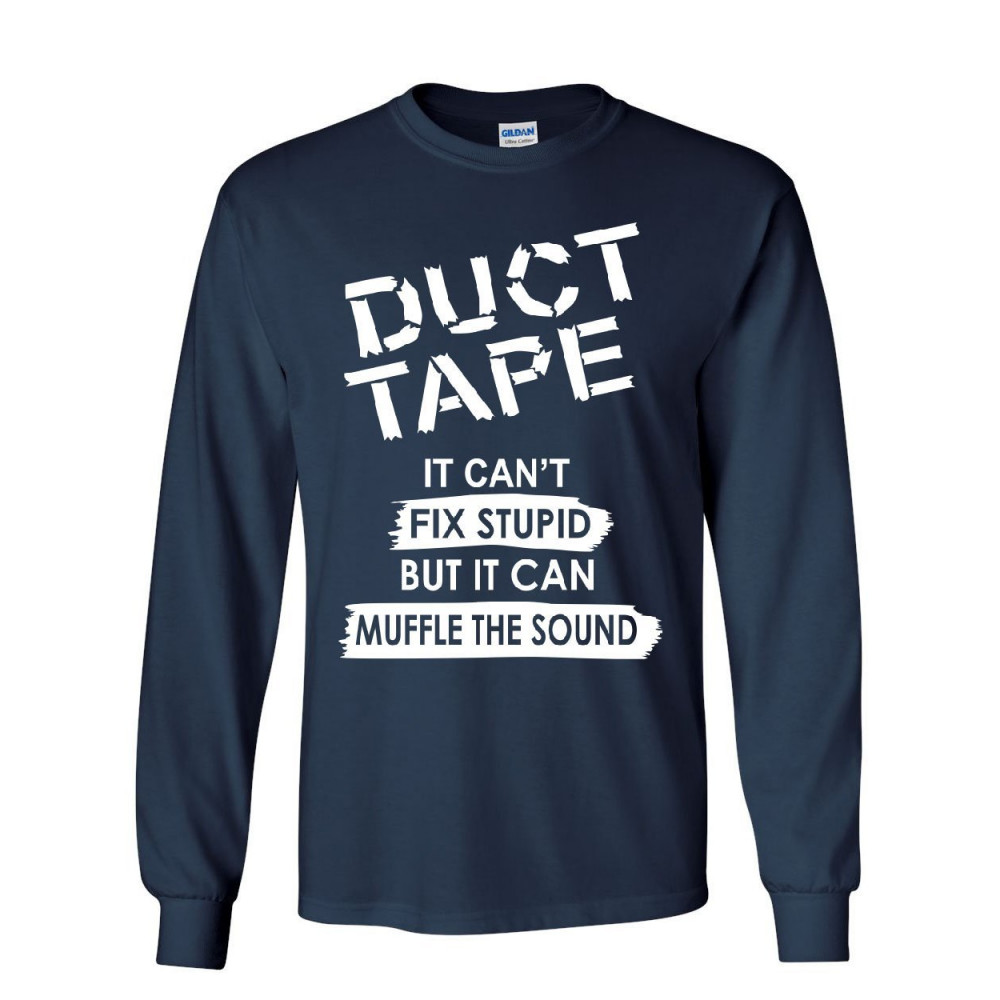 DUCT TAPE IT CAN'T FIX STUPID long sleeve t-shirt offensive humor sarcastic tee navy blue