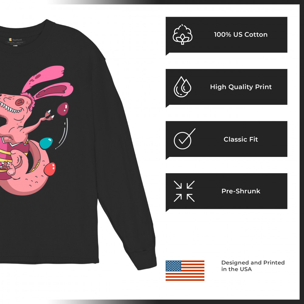EASTER EGG T-REX long sleeve t-shirt happy easter bunny dinosaur egg hunt black