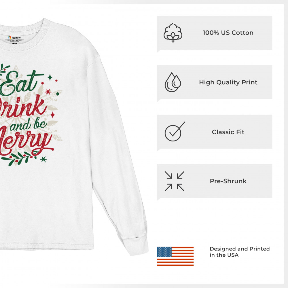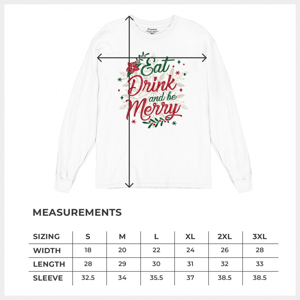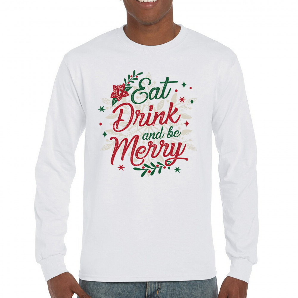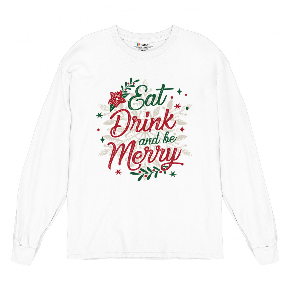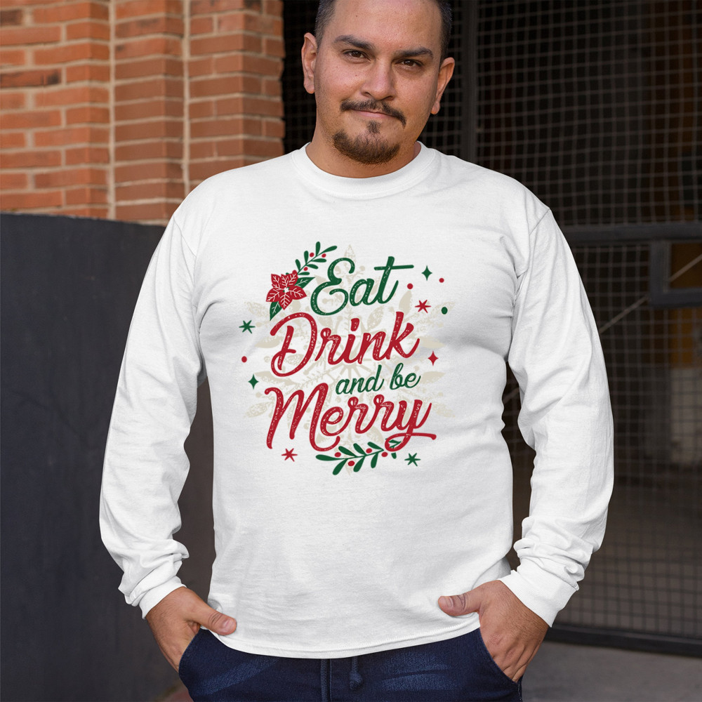 Bring the joy of the season with this "Eat, Drink, and Be Merry" design, crafted to make every holiday gathering a bit brighter. Ideal for cozy holiday mornings, family gatherings, Secret Santa gifts, or festive office parties, this piece captures the spirit of Christmas. Perfect for matching group sets or as a thoughtful holiday present, it’s designed in classic Christmas colors to complement the festive atmosphere. Let this design bring warmth and joy to your celebrations!