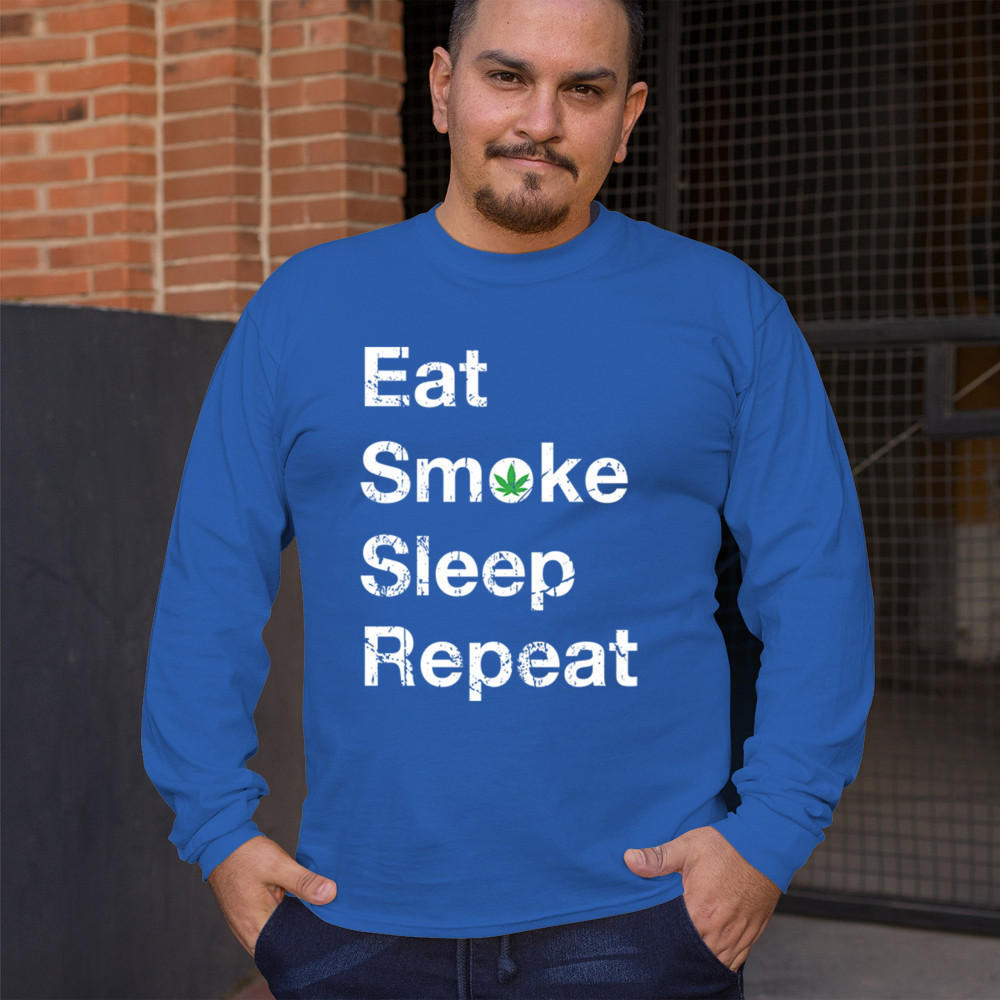 Eat Smoke Sleep Repeat design with weed leaf humor. Great for 420 fans, stoners, sesh lovers, smokers, and relaxed cannabis vibes.