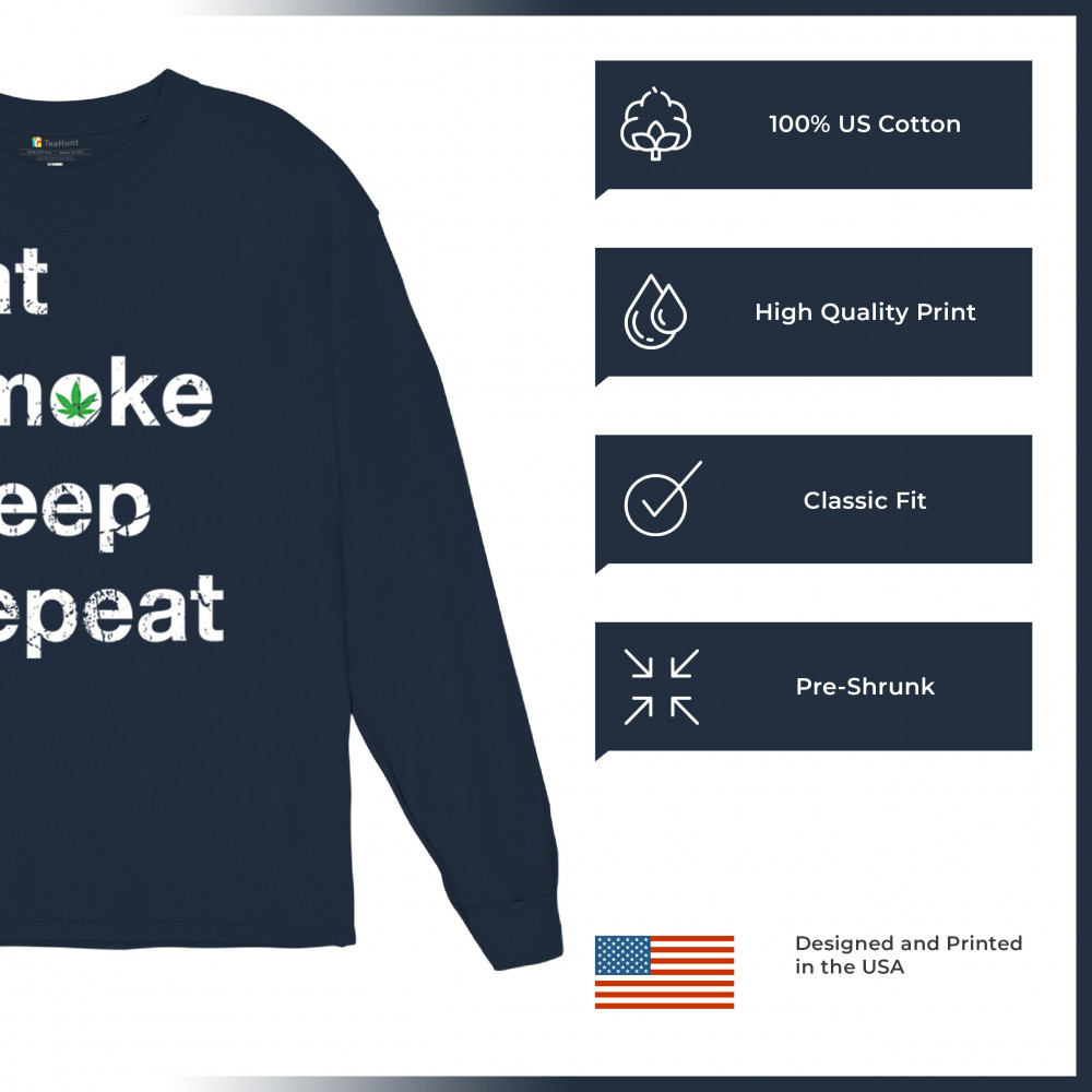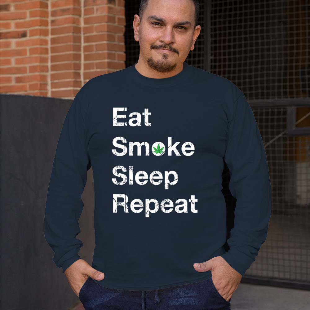 Eat Smoke Sleep Repeat design with weed leaf humor. Great for 420 fans, stoners, sesh lovers, smokers, and relaxed cannabis vibes.