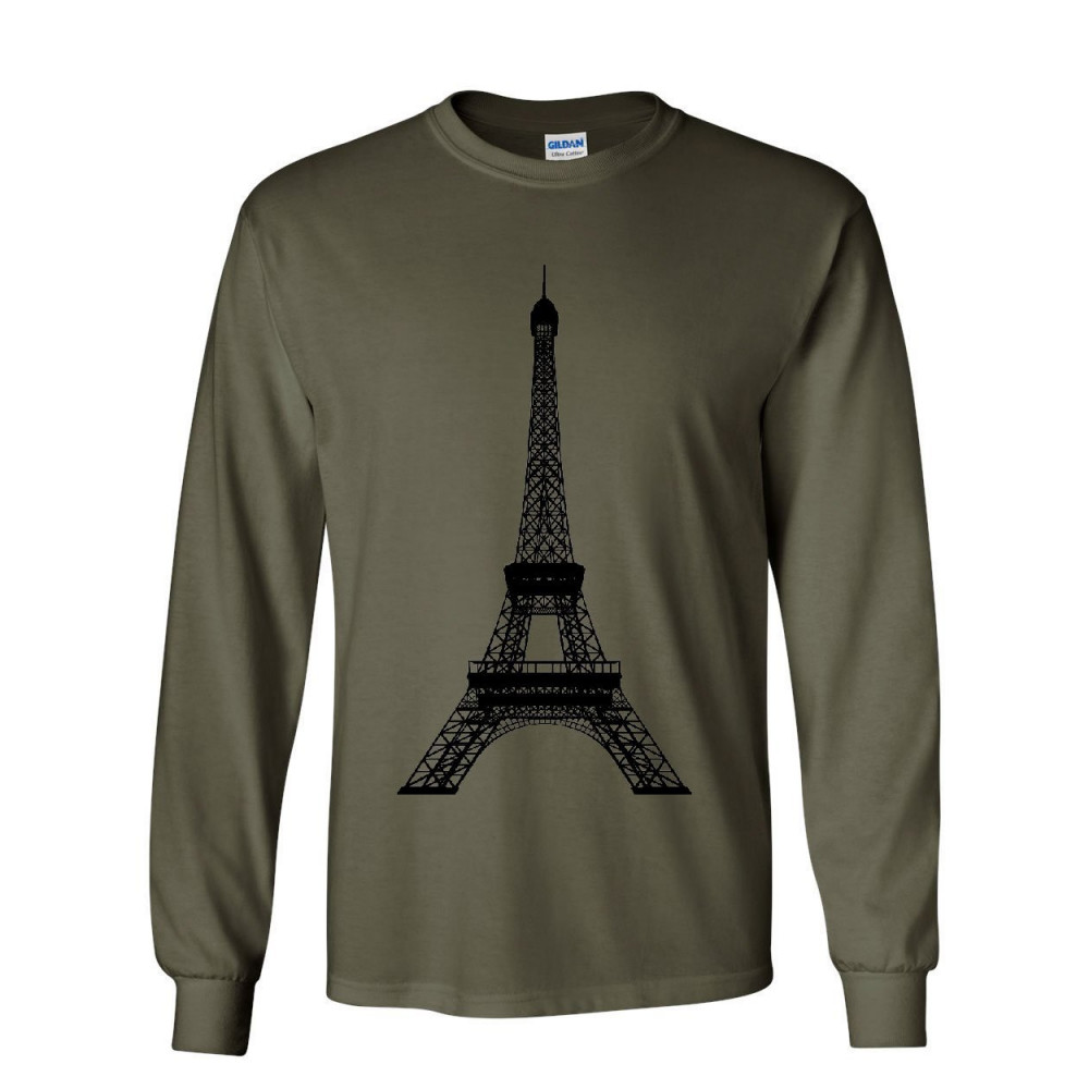 EIFFEL TOWER long sleeve t-shirt paris france sightseeing travel europe tee military green