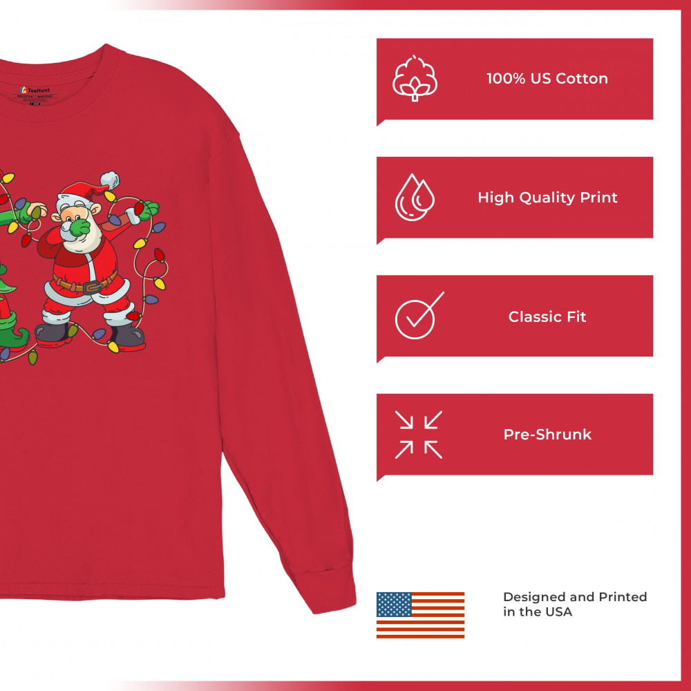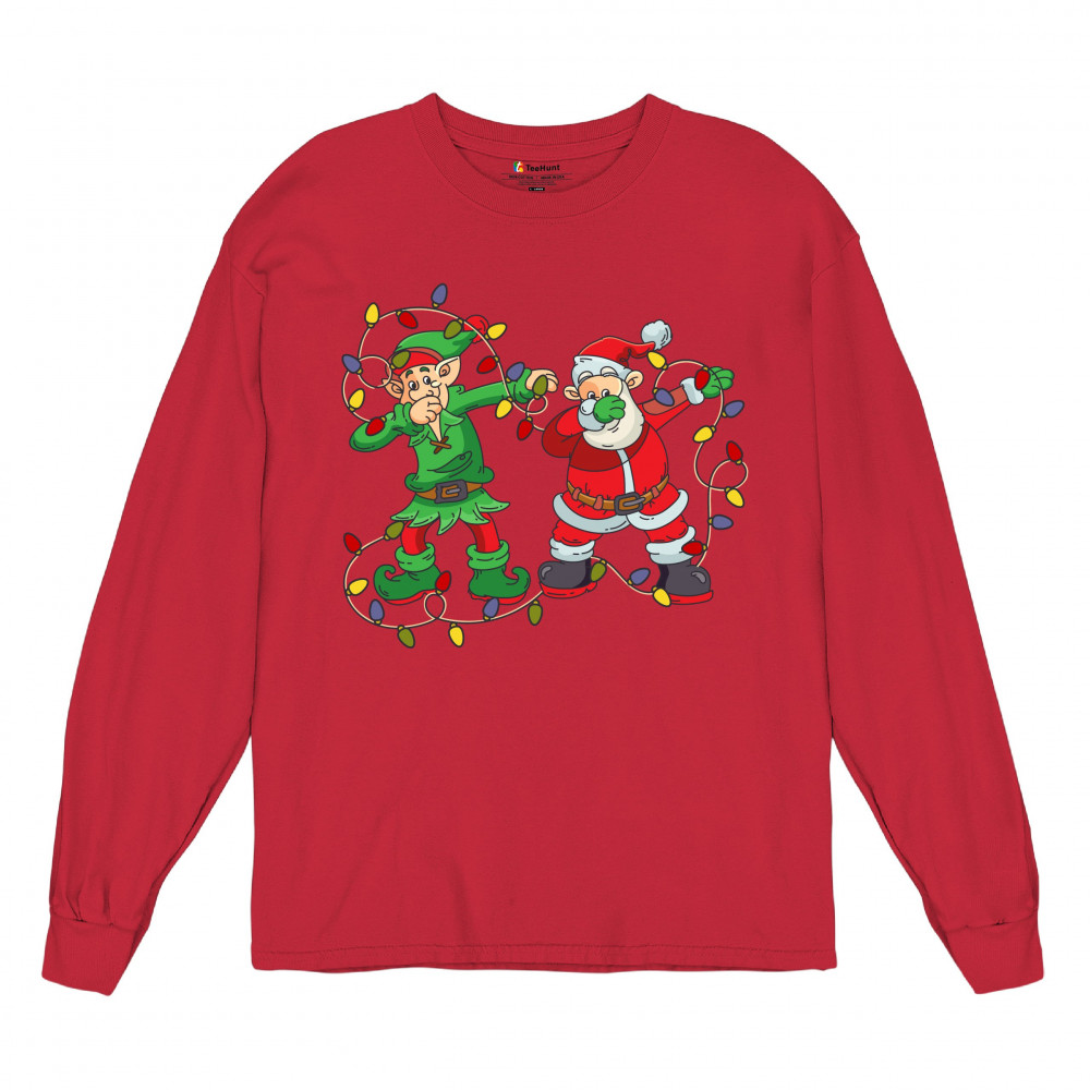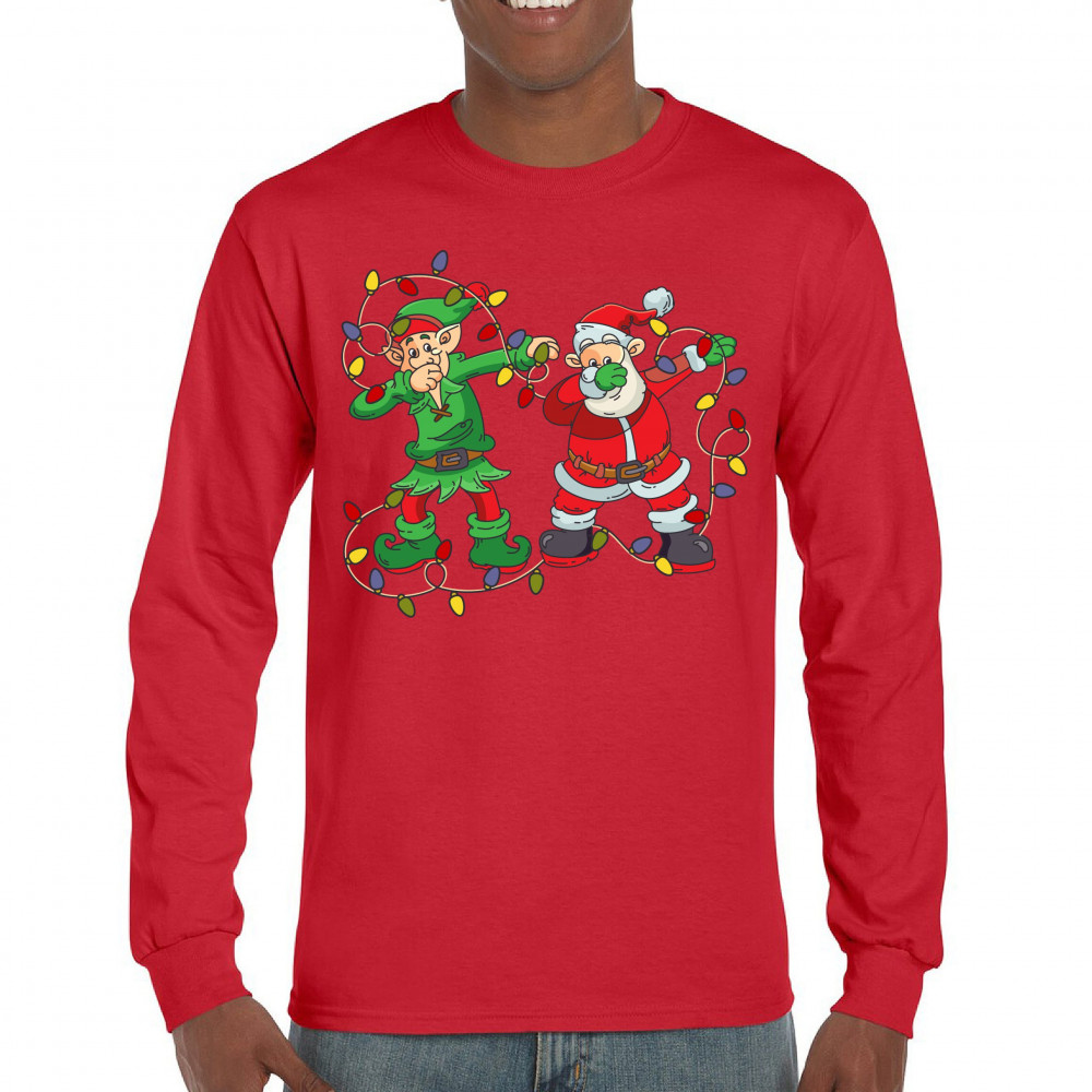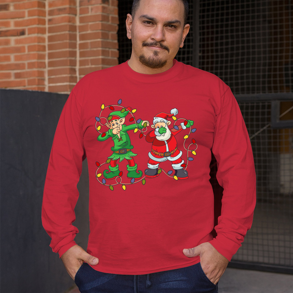 ELF AND SANTA CLAUS DAB DANCING long sleeve t-shirt merry and bright christmas red