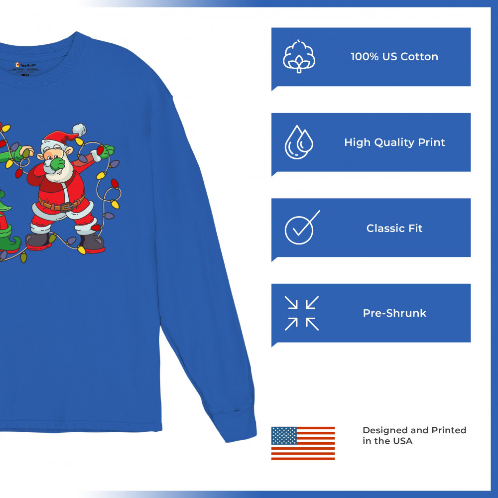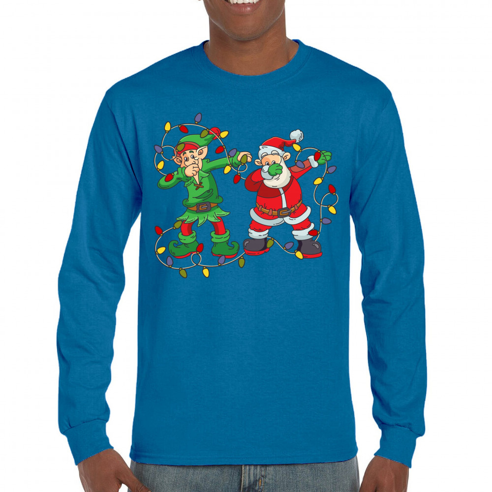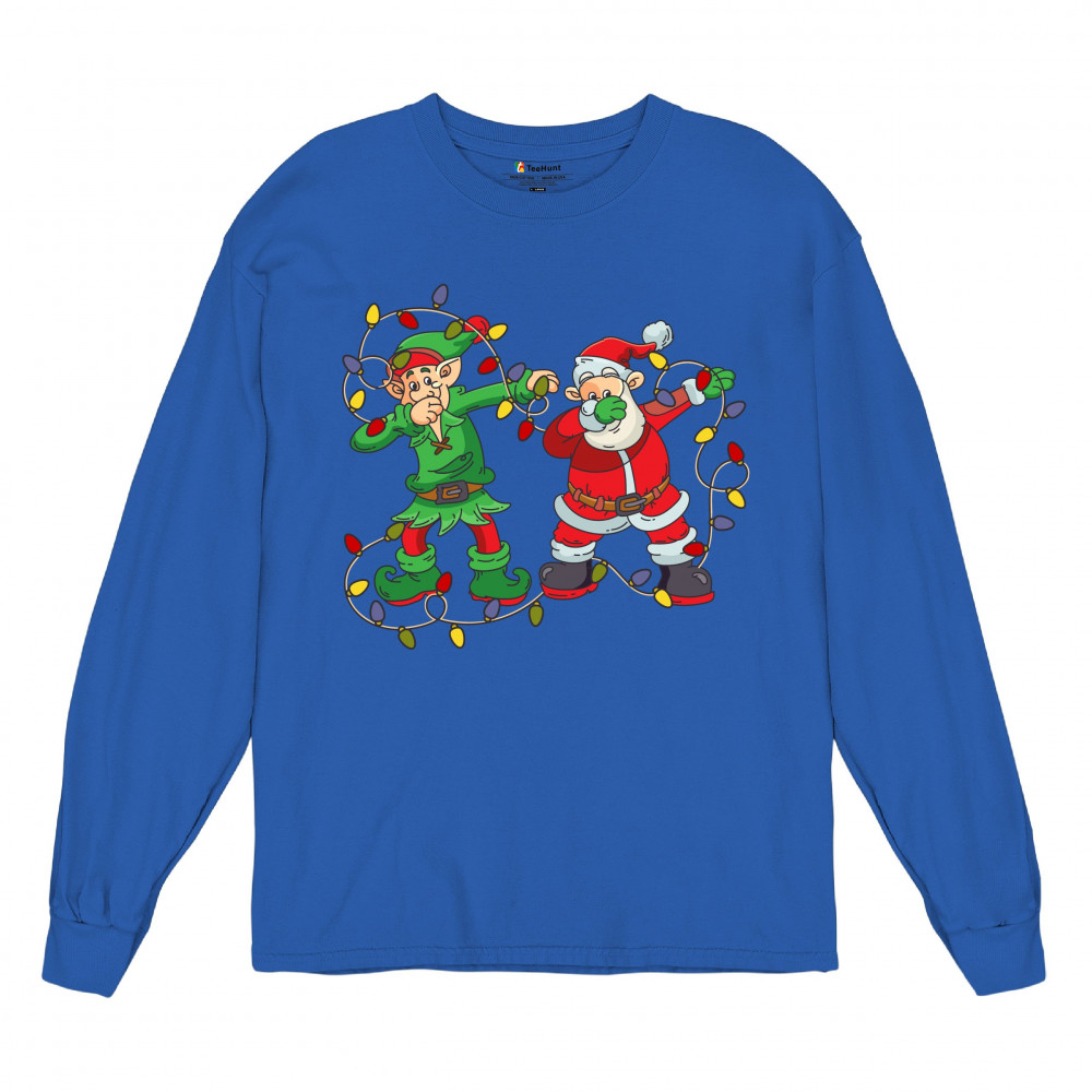 ELF AND SANTA CLAUS DAB DANCING long sleeve t-shirt merry and bright christmas royal blue