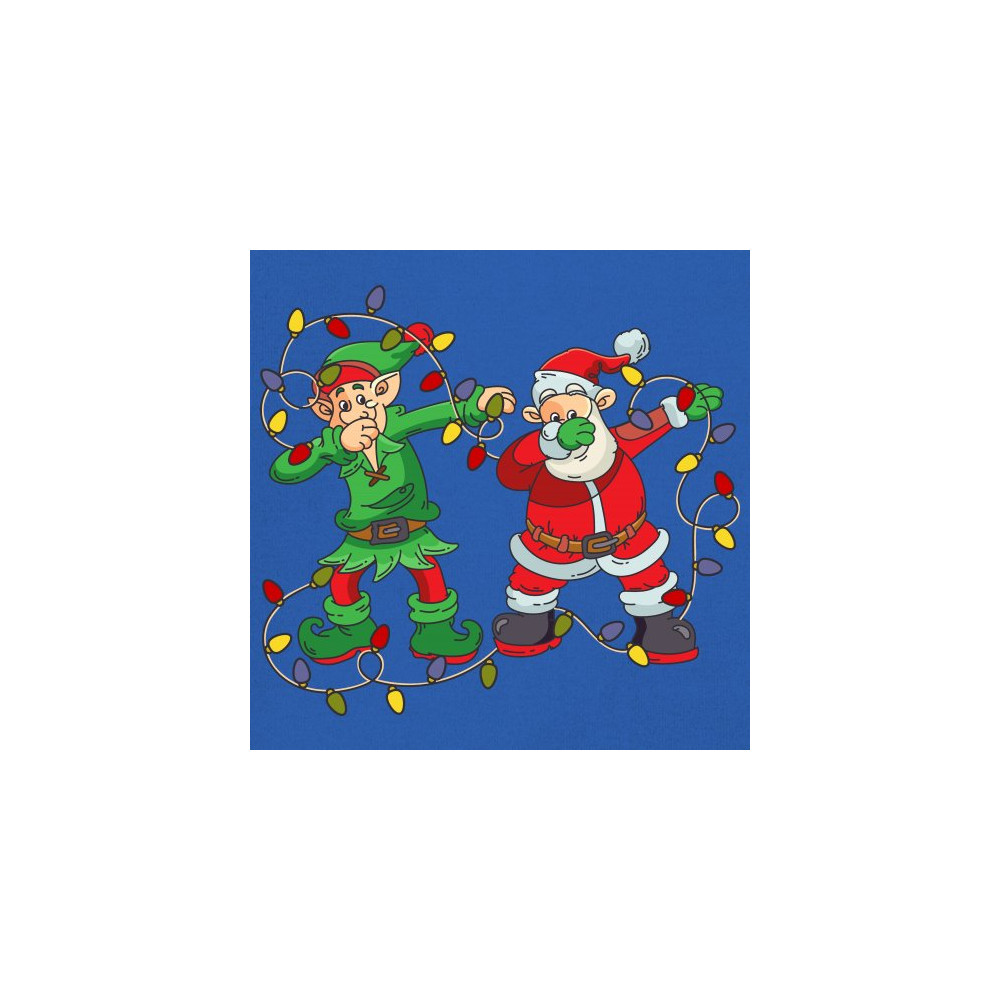 A funny print featuring an elf and Santa Claus dab dancing while surrounded by Christmas lights. Amazing choice to make people smile and spread positive vibes on Christmas Eve.