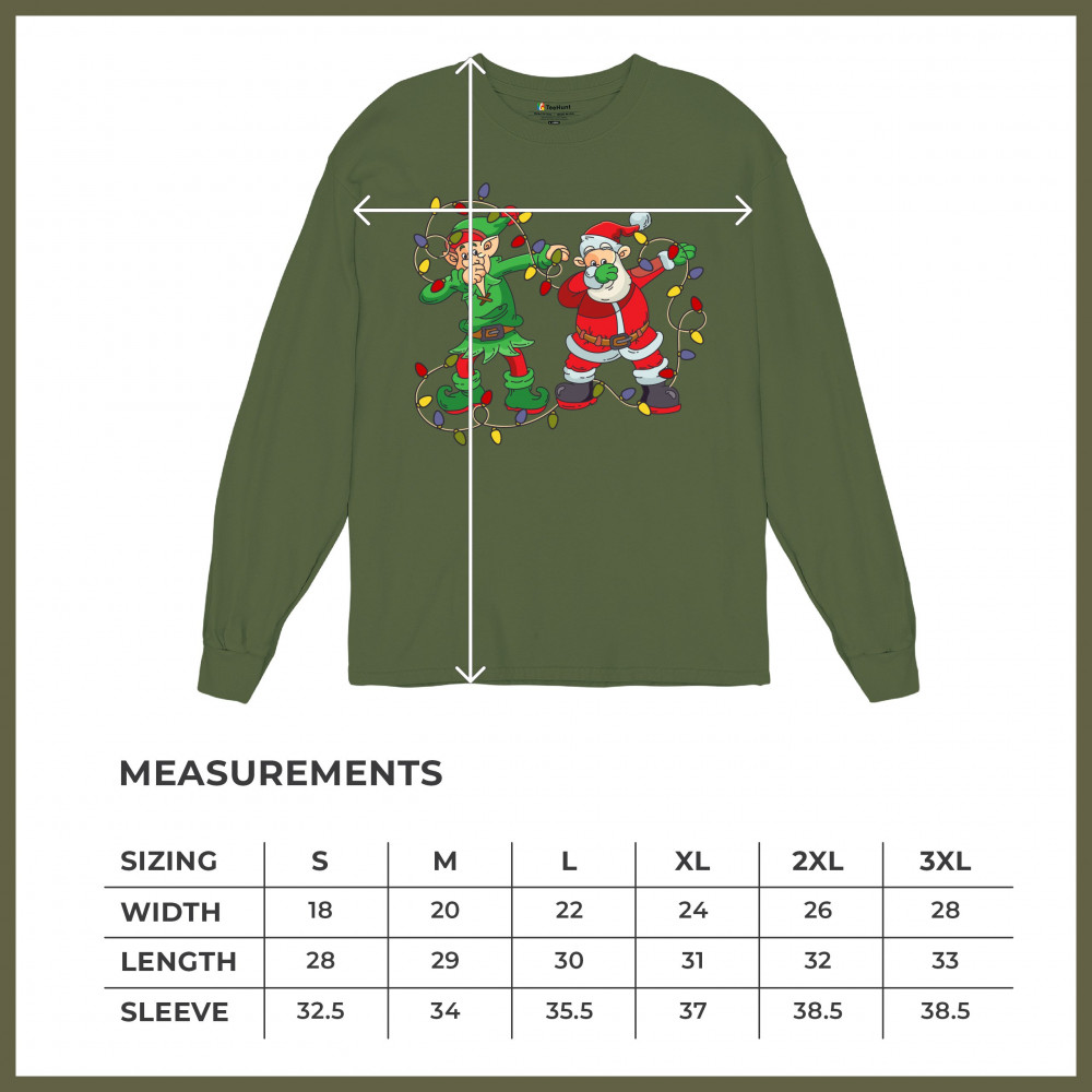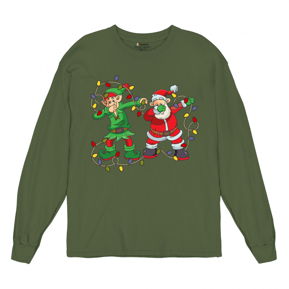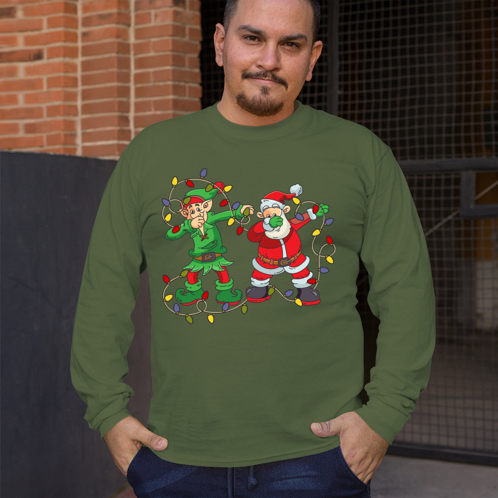 ELF AND SANTA CLAUS DAB DANCING long sleeve t-shirt merry and bright christmas military green