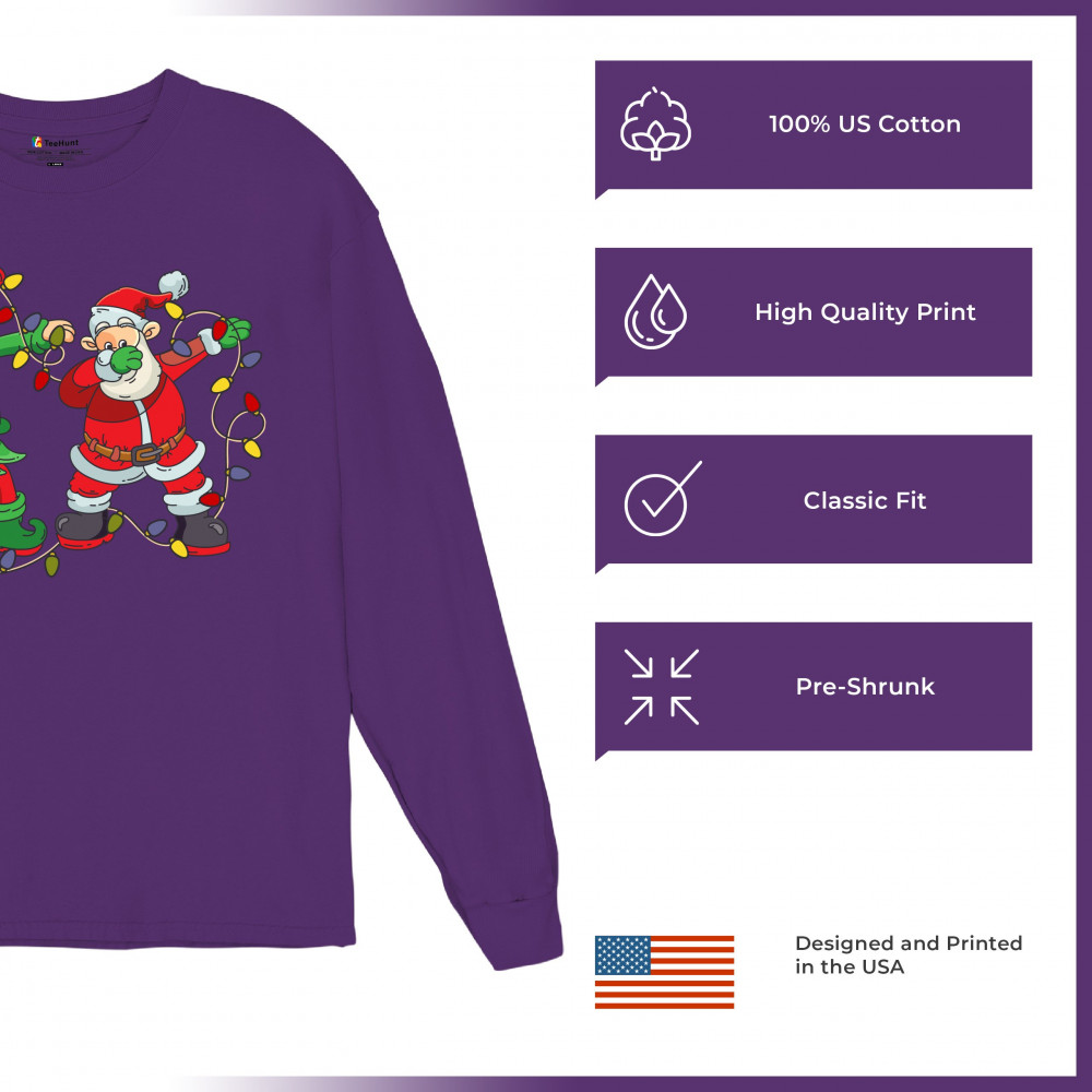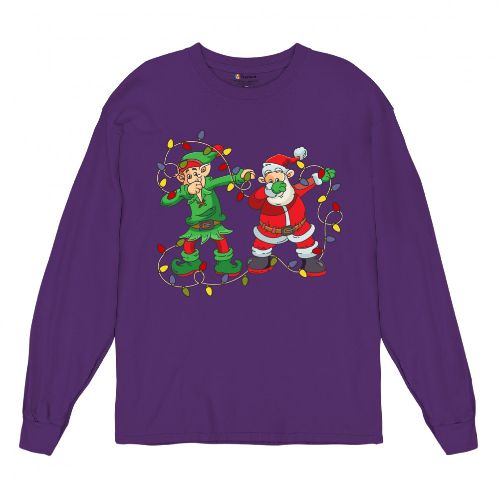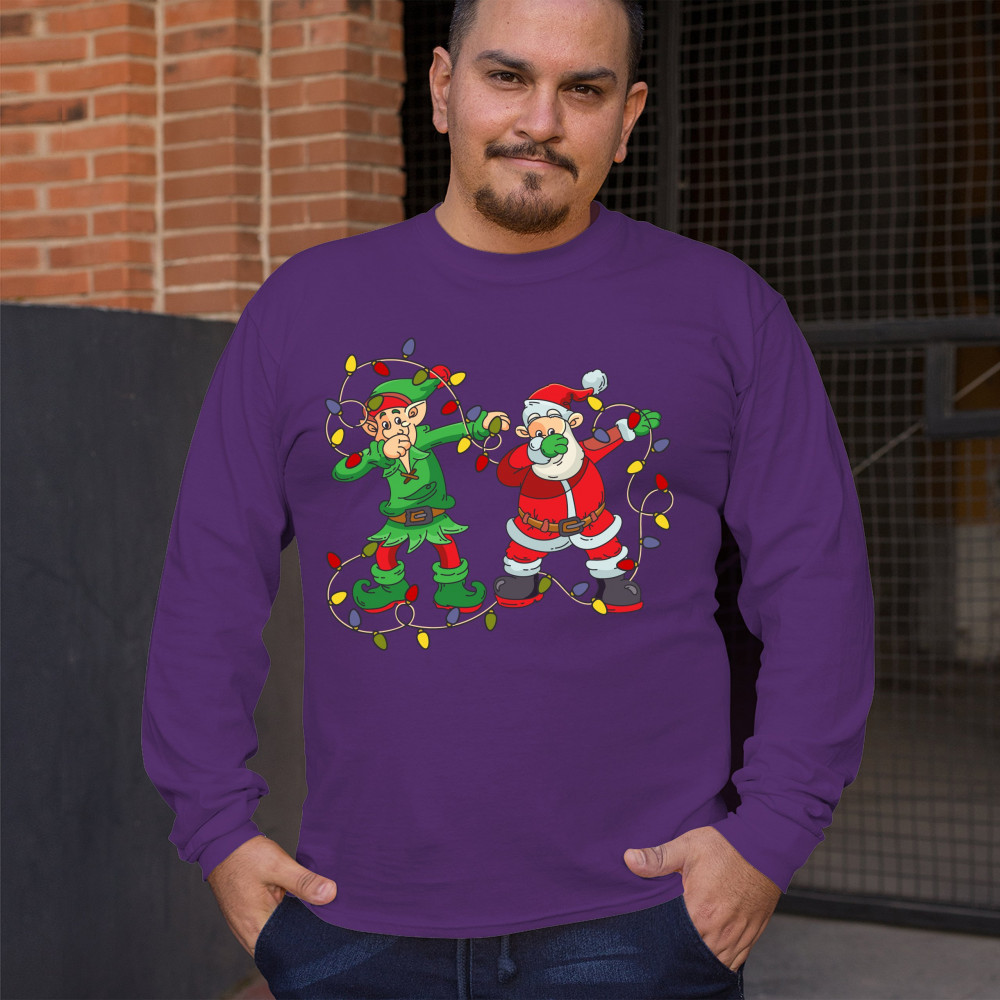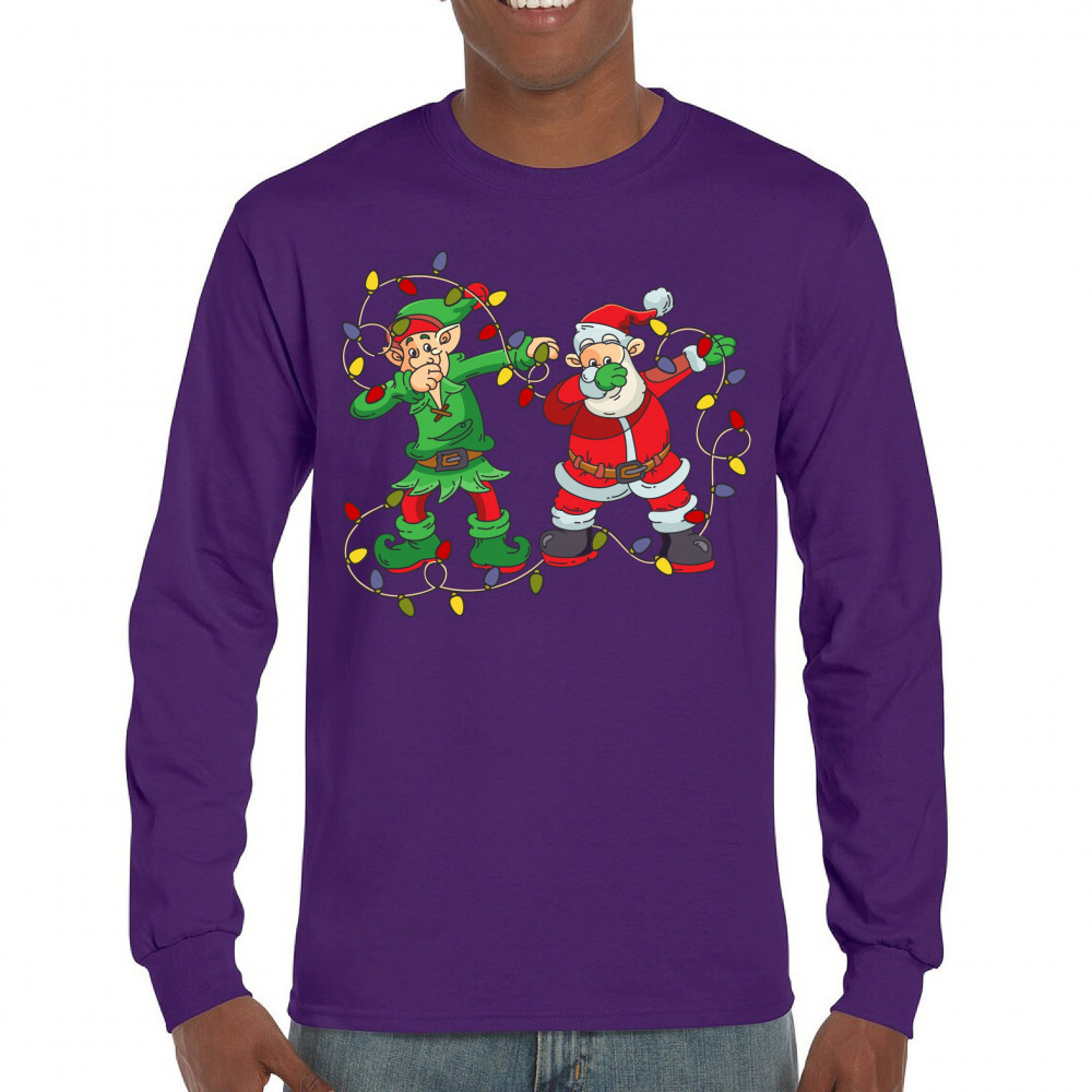 ELF AND SANTA CLAUS DAB DANCING long sleeve t-shirt merry and bright christmas purple