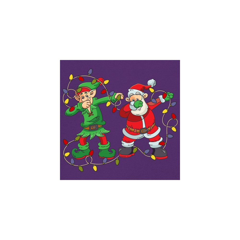A funny print featuring an elf and Santa Claus dab dancing while surrounded by Christmas lights. Amazing choice to make people smile and spread positive vibes on Christmas Eve.