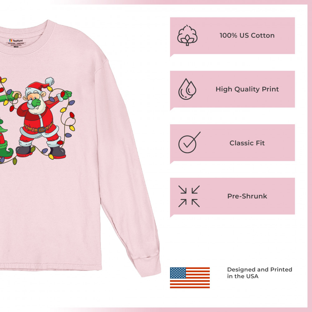 ELF AND SANTA CLAUS DAB DANCING long sleeve t-shirt merry and bright christmas pink