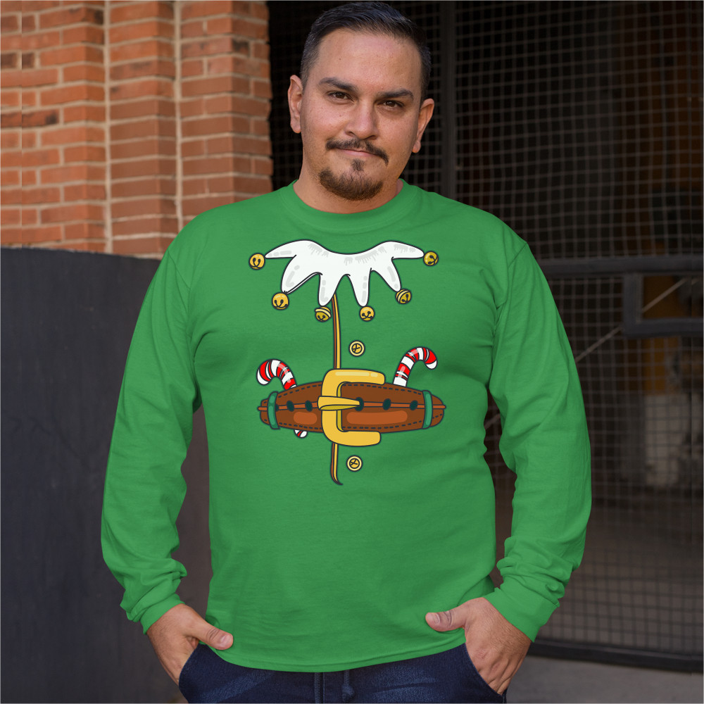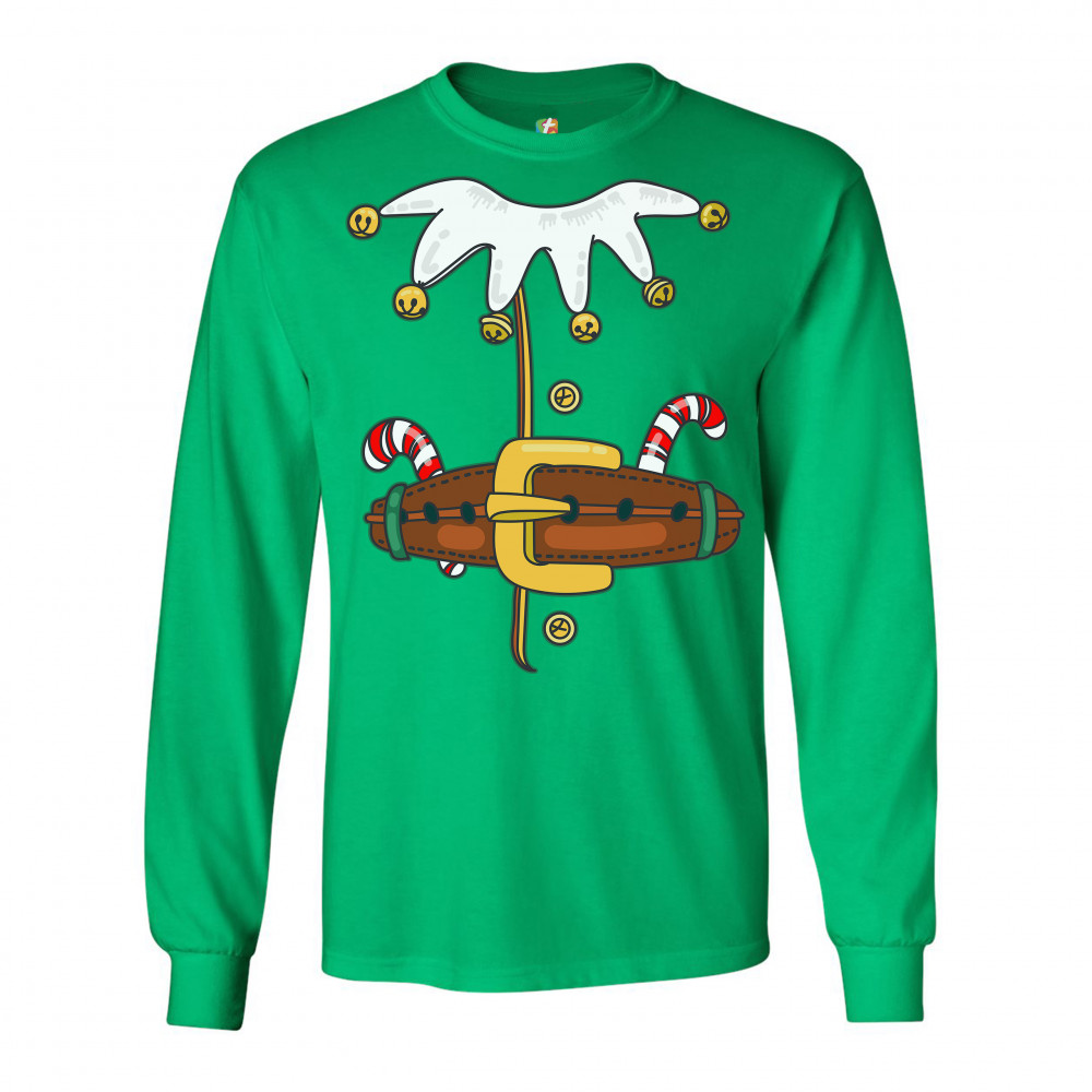 ELF COSTUME long sleeve t-shirt merry christmas naughty or nice xmas green
