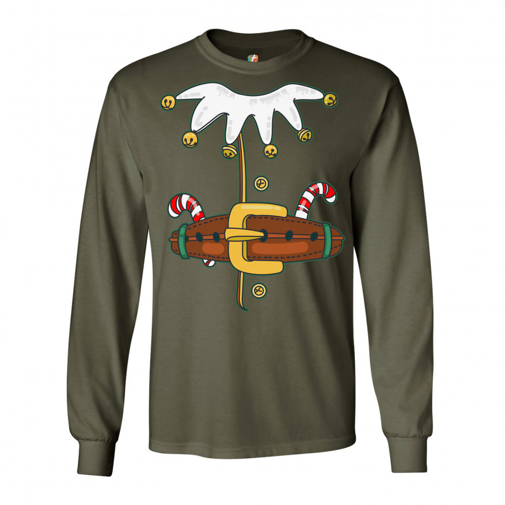 ELF COSTUME long sleeve t-shirt merry christmas naughty or nice xmas military green