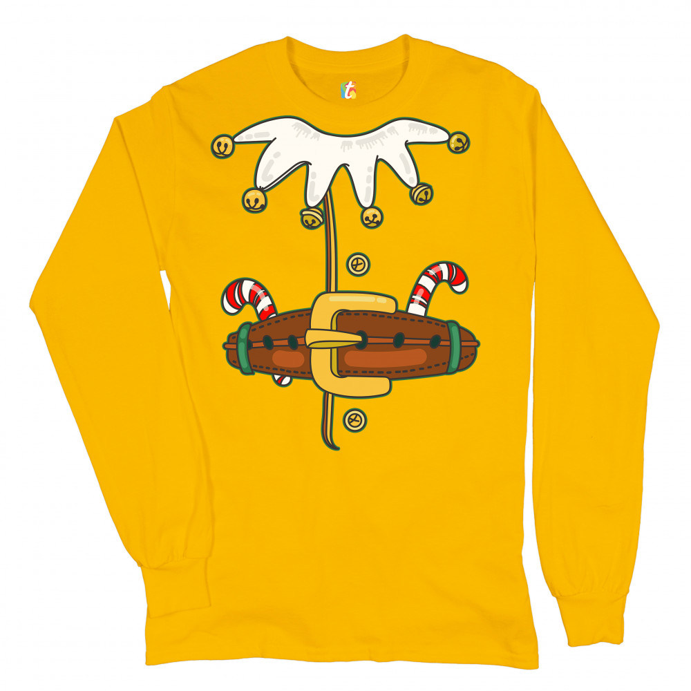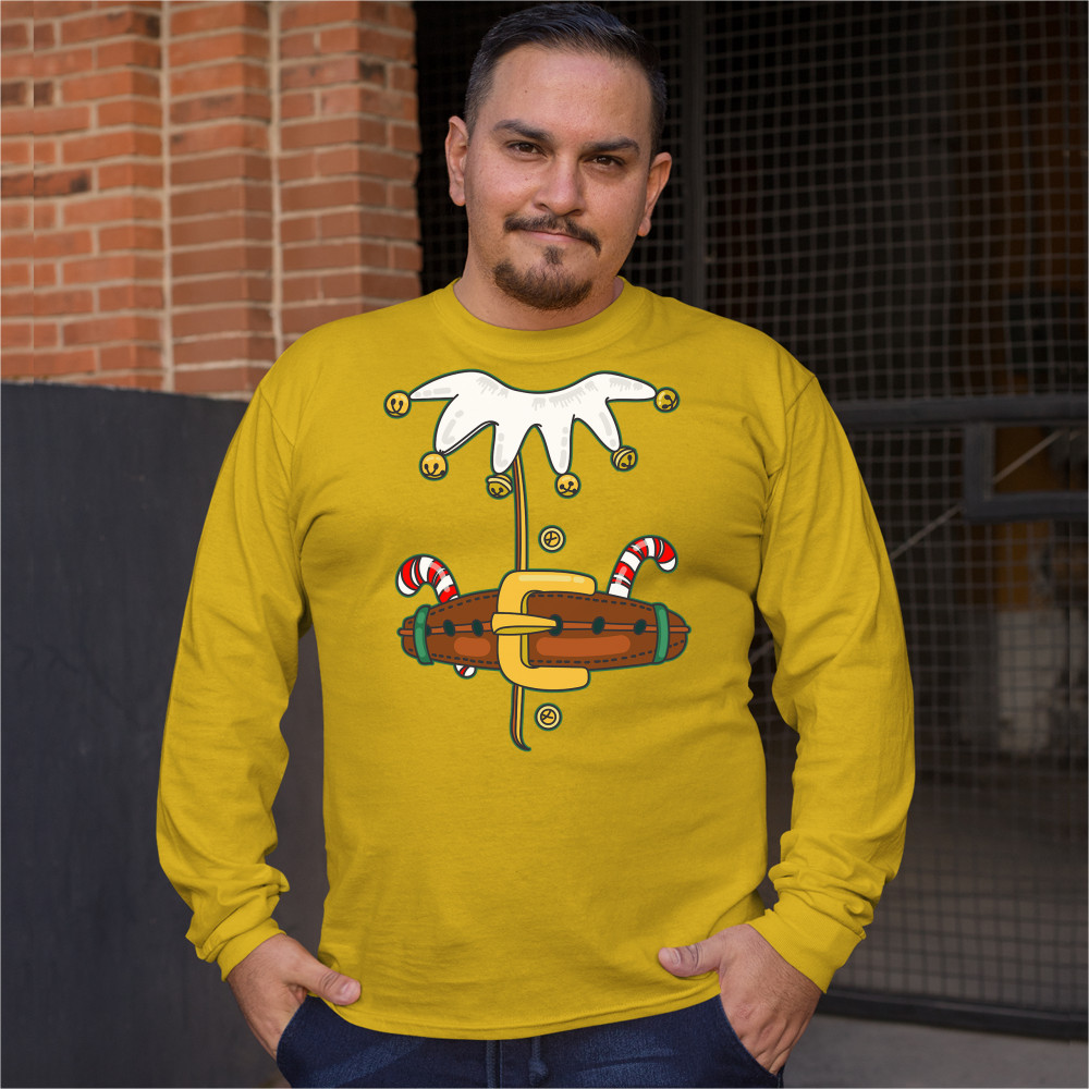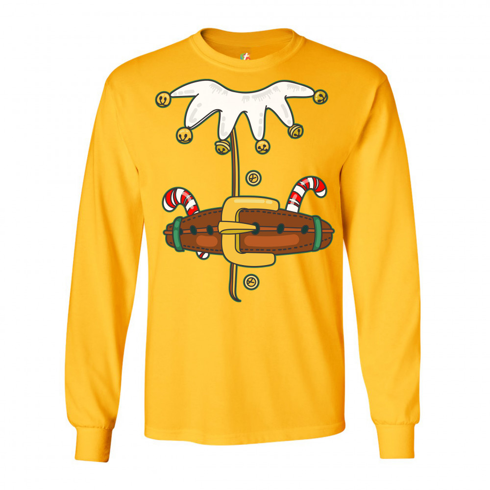 ELF COSTUME long sleeve t-shirt merry christmas naughty or nice xmas yellow