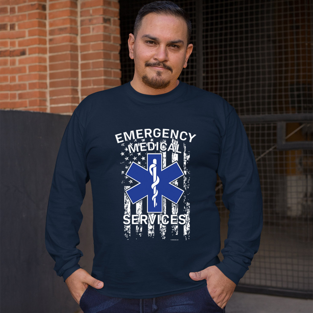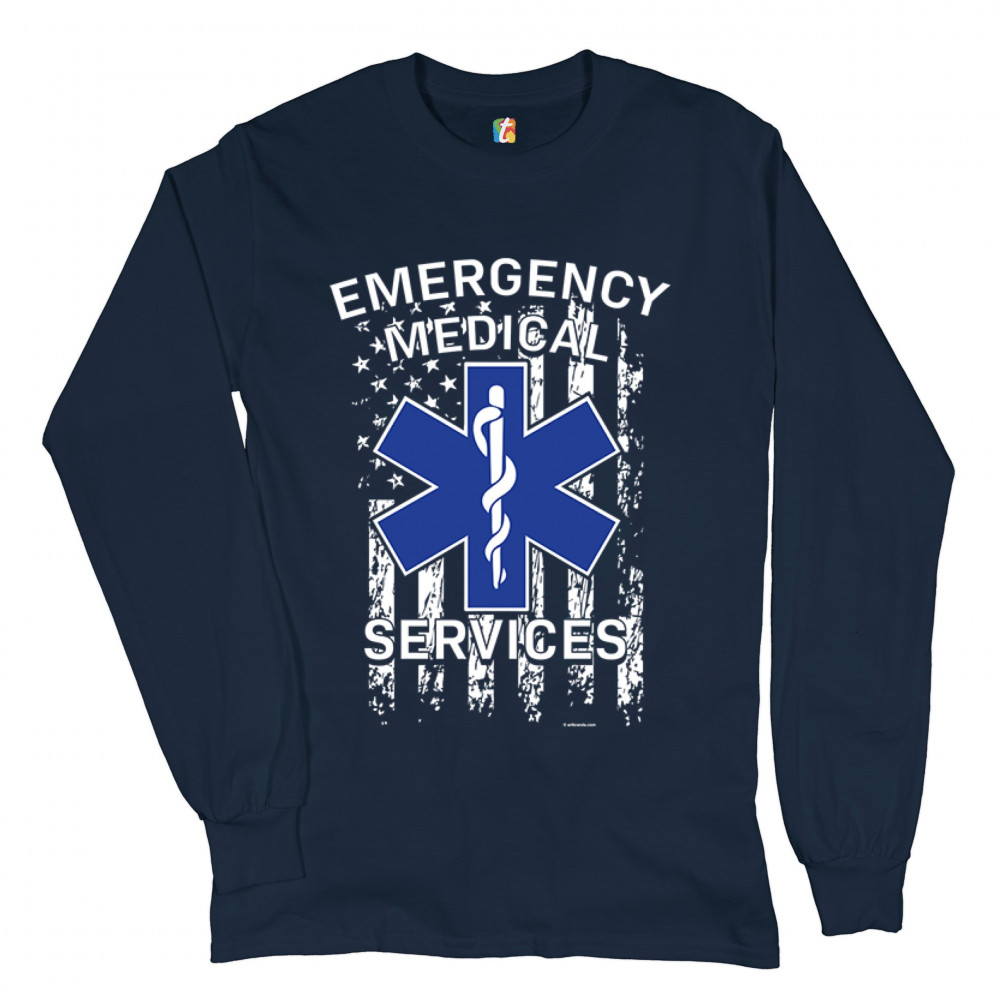 EMERGENCY MEDICAL SERVICES long sleeve t-shirt american flag star of life ems navy blue