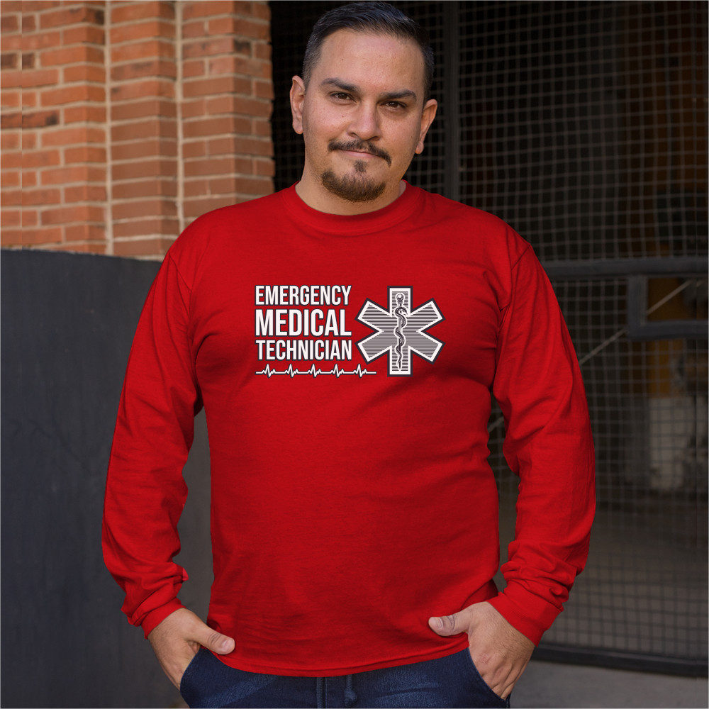 EMERGENCY MEDICAL TECHNICIAN long sleeve t-shirt emt ems first responder red