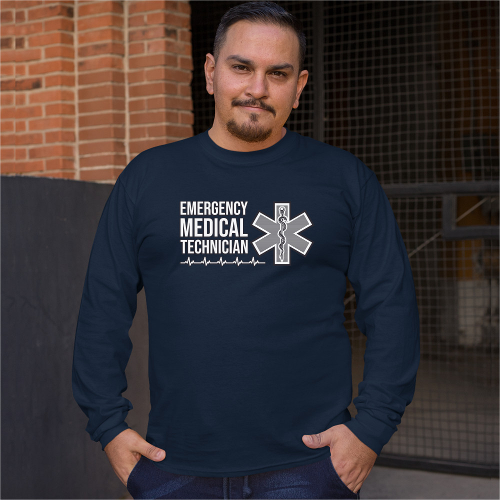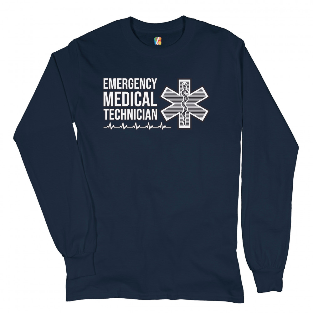 EMERGENCY MEDICAL TECHNICIAN long sleeve t-shirt emt ems first responder navy blue