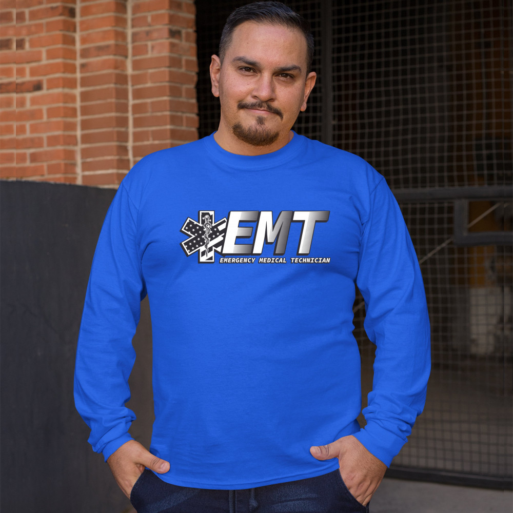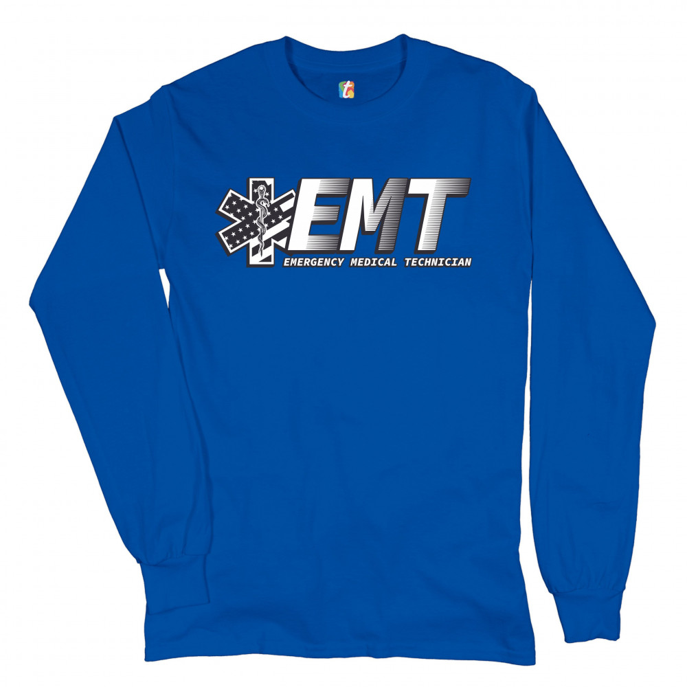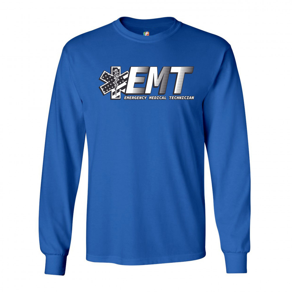 EMT EMERGENCY MEDICAL TECHNICIAN long sleeve t-shirt ems paramedic star of life royal blue