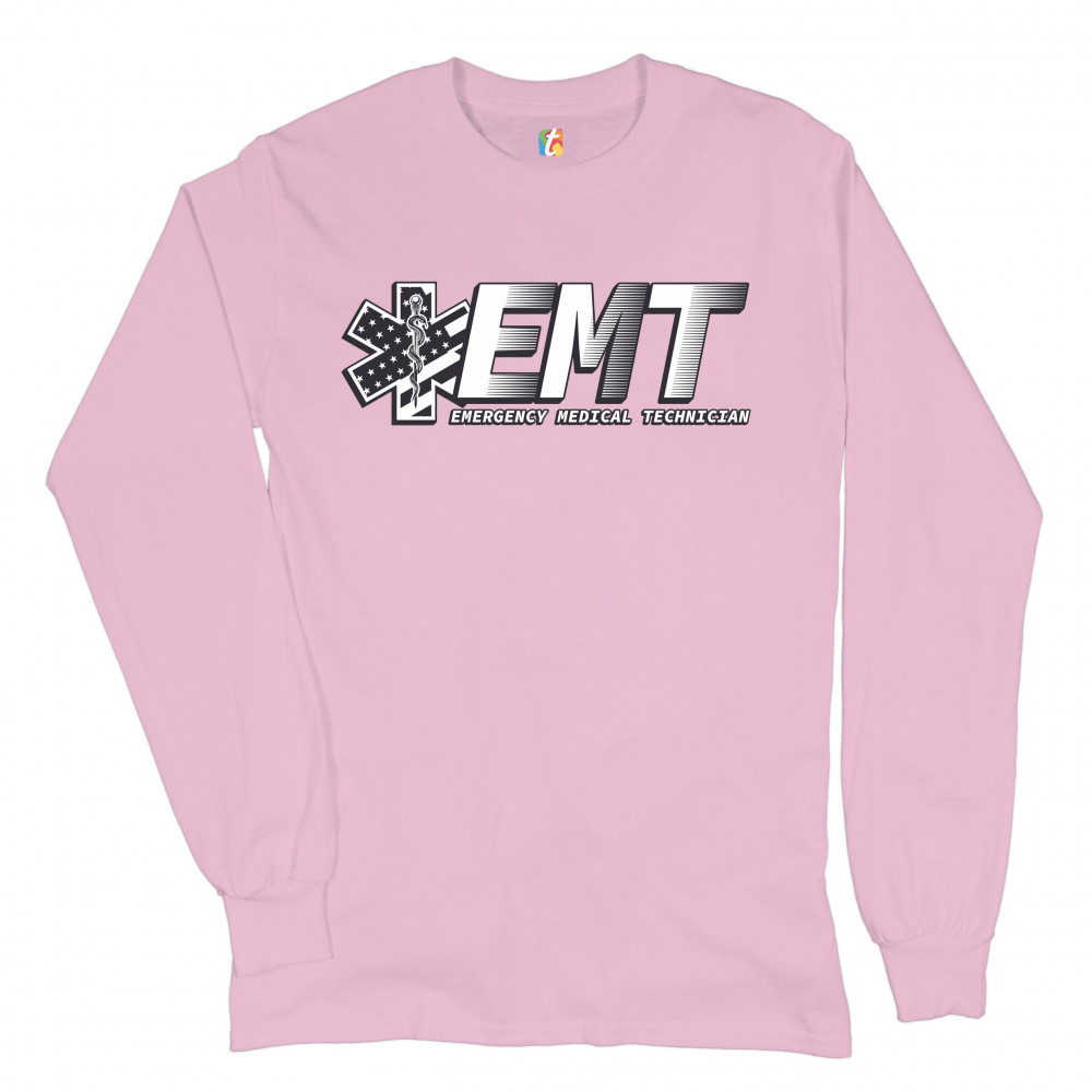 A print featuring big letters "EMT" - an abbreviation for "Emergency Medical Technician". On the left side the print features a Star of Life, the worldwide recognized symbol of emergency medical services, with the Rod of Asclepius and Stars and Stripes in