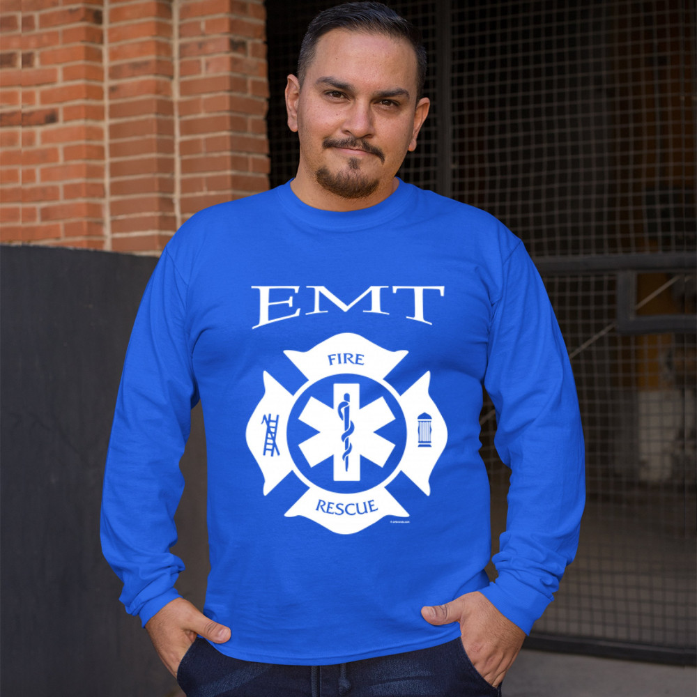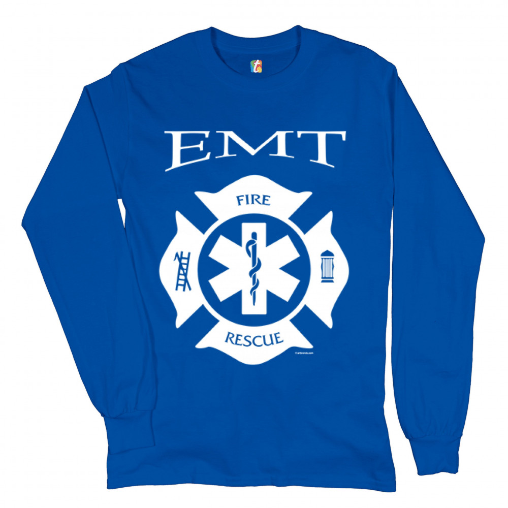 EMT FIRE AND RESCUE long sleeve t-shirt emergency first responder ems medic royal blue