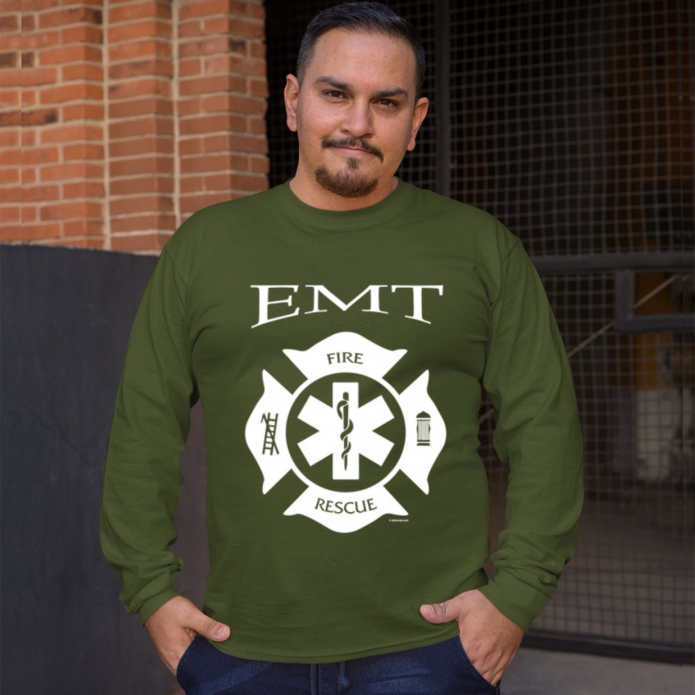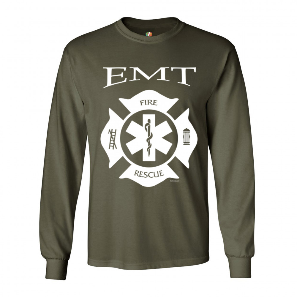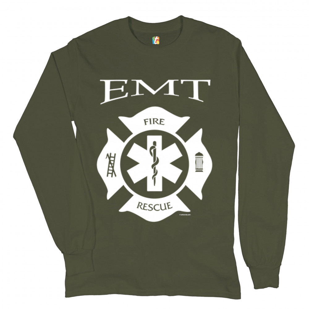 EMT FIRE AND RESCUE long sleeve t-shirt emergency first responder ems medic military green