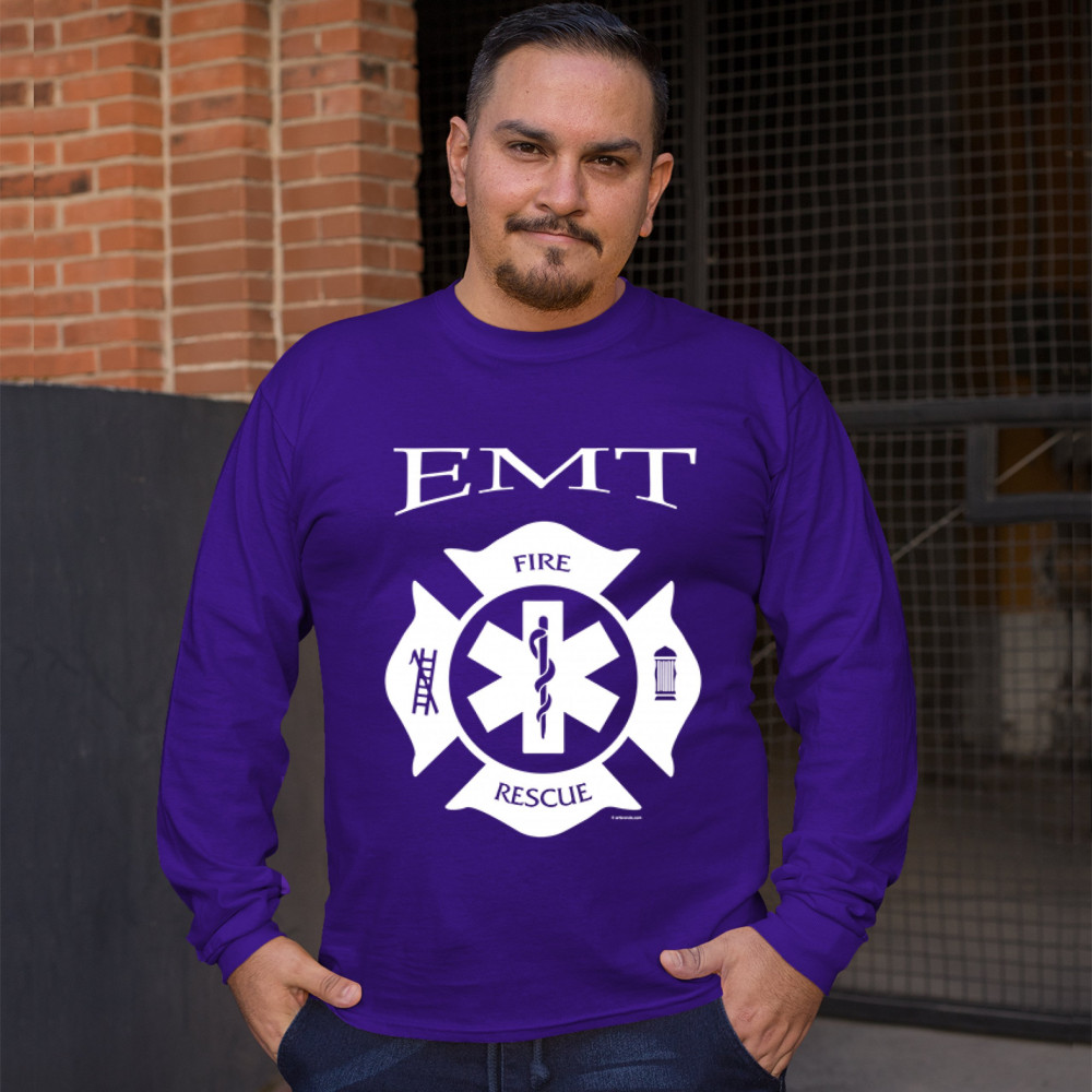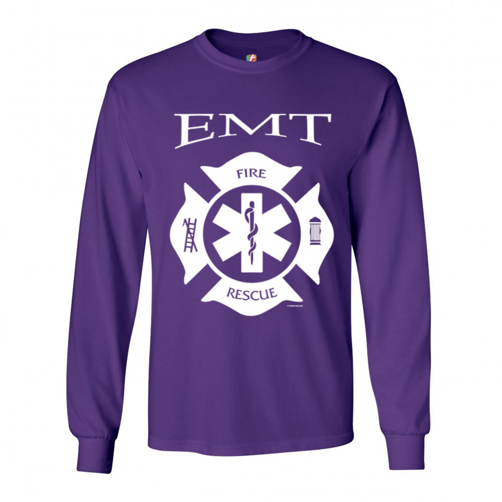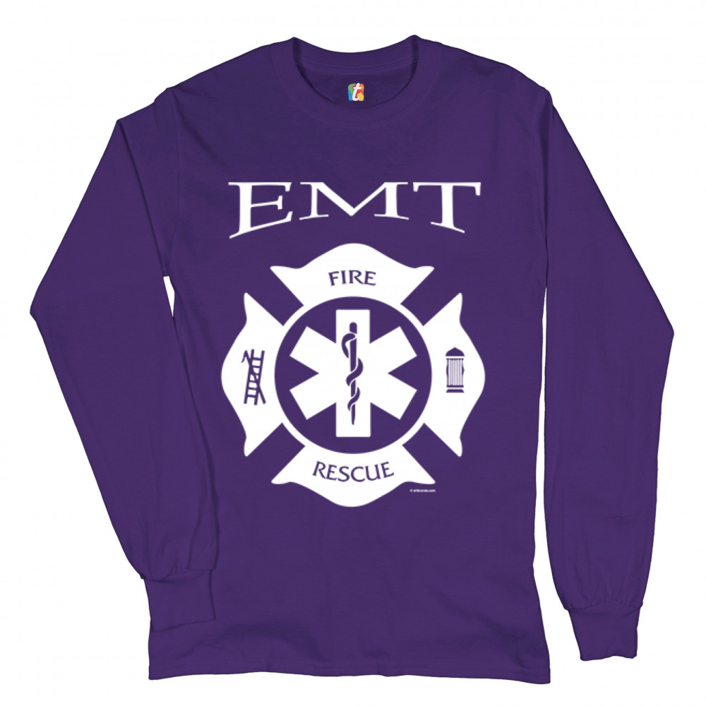 EMT FIRE AND RESCUE long sleeve t-shirt emergency first responder ems medic purple