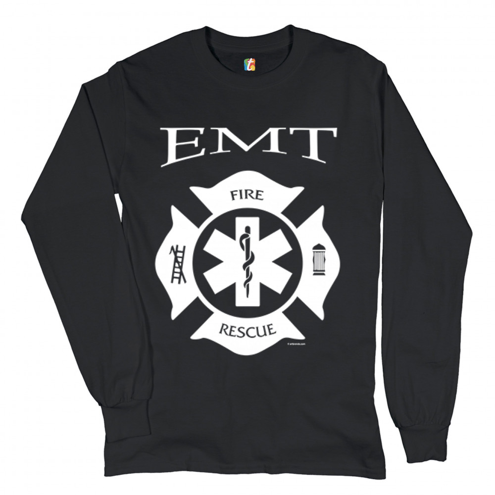 EMT FIRE AND RESCUE long sleeve t-shirt emergency first responder ems medic black