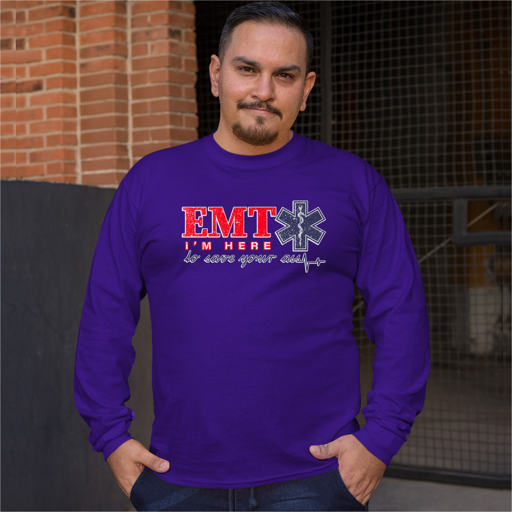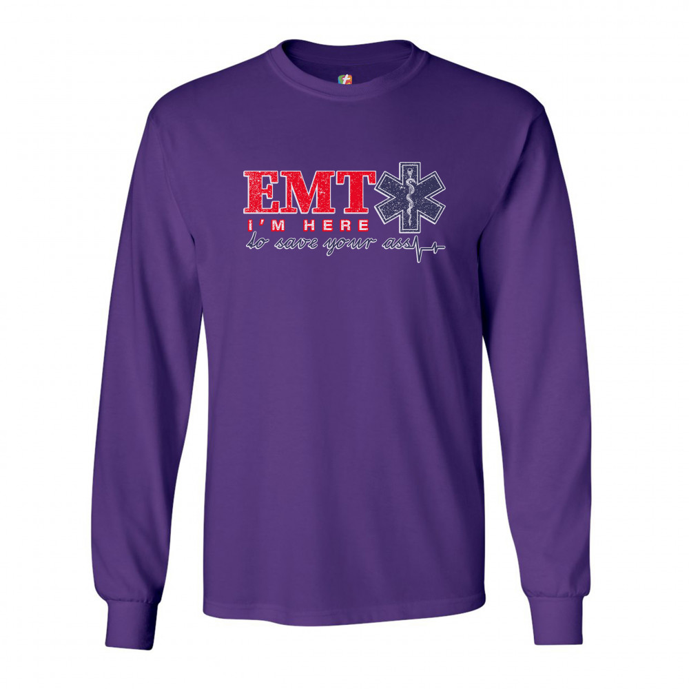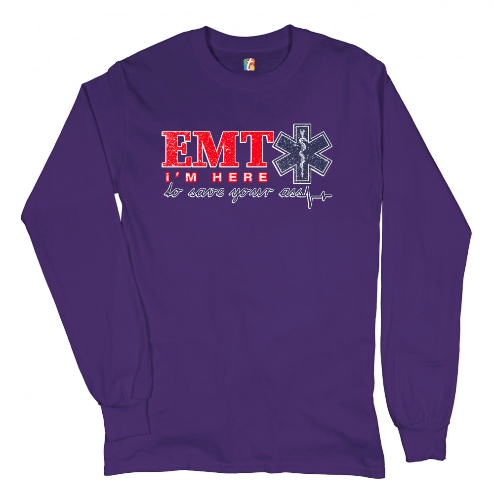 EMT I'M HERE TO SAVE YOUR ASS long sleeve t-shirt funny ems medical assistant purple