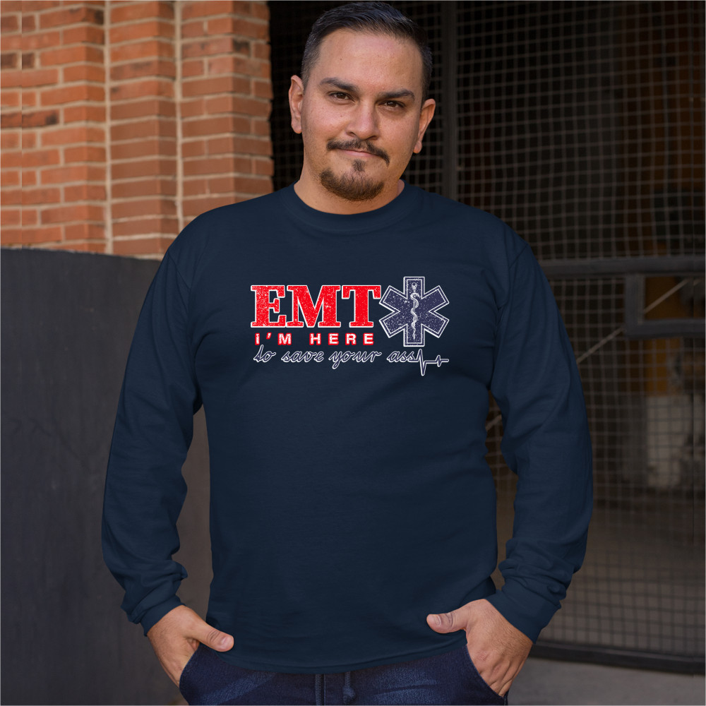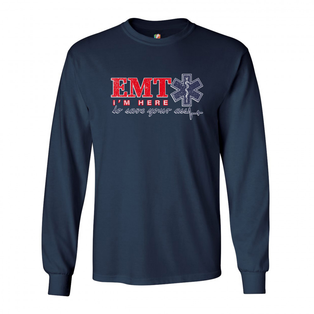 EMT I'M HERE TO SAVE YOUR ASS long sleeve t-shirt funny ems medical assistant navy blue