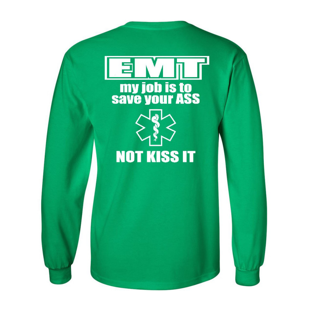 EMT MY JOB IS TO SAVE YOUR ASS long sleeve t-shirt funny medic green