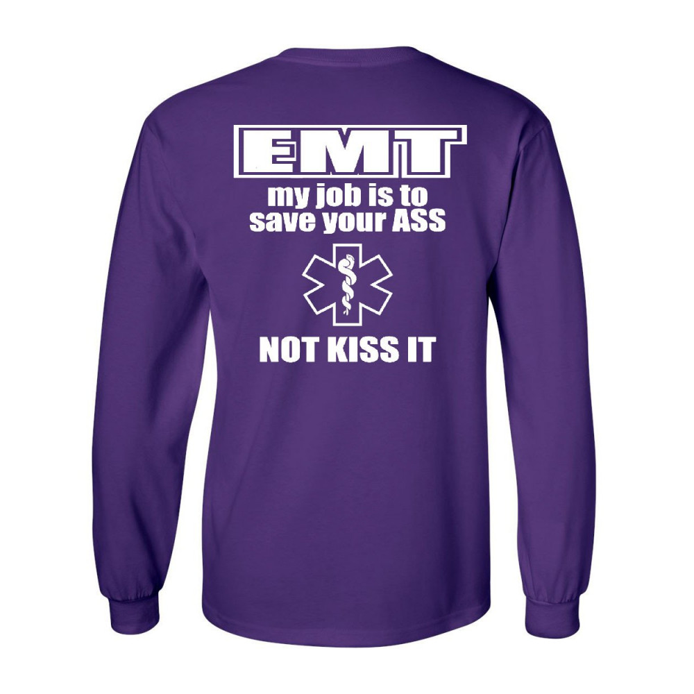EMT MY JOB IS TO SAVE YOUR ASS long sleeve t-shirt funny medic purple