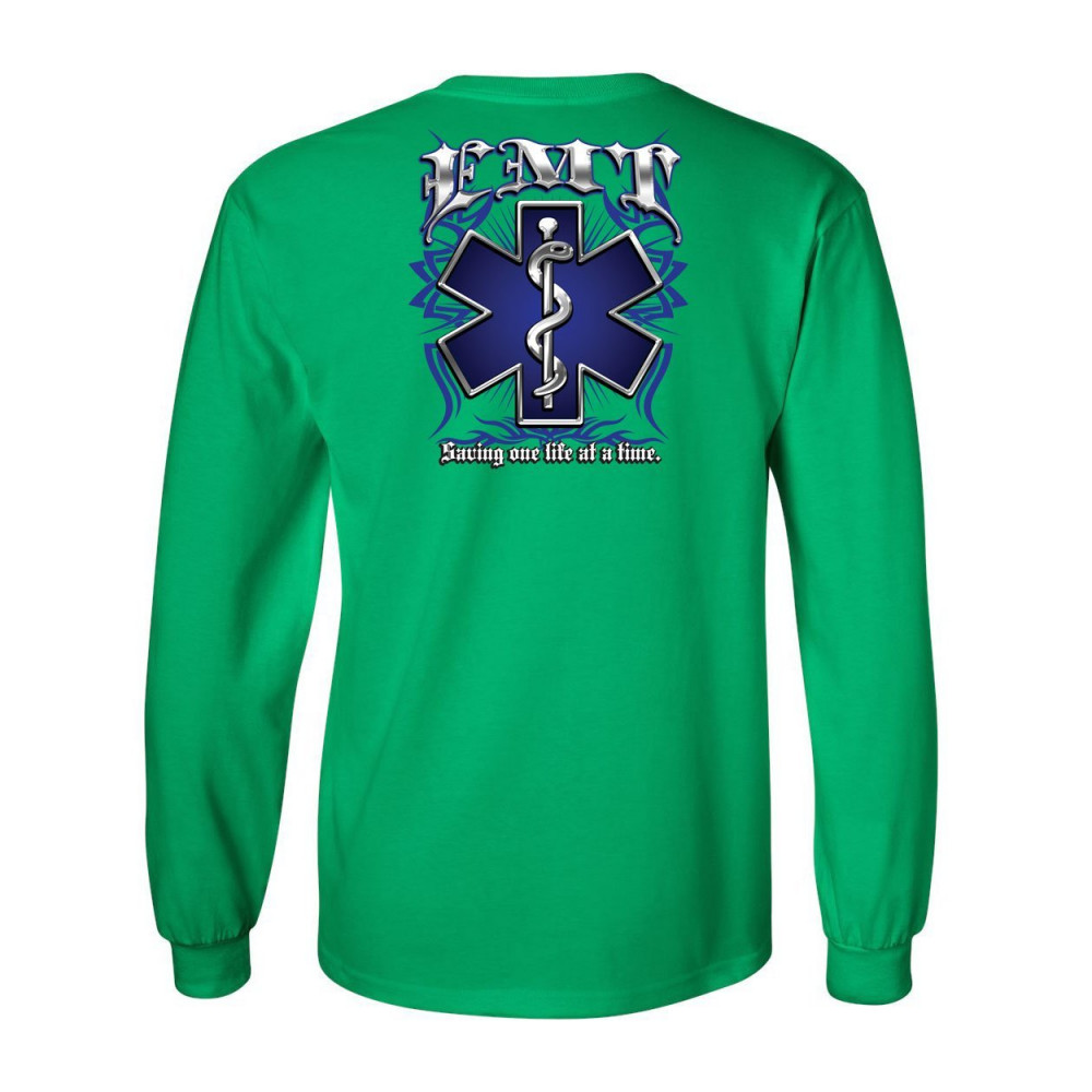 EMT SAVING ONE LIFE AT A TIME long sleeve t-shirt paramedic first responders tee green