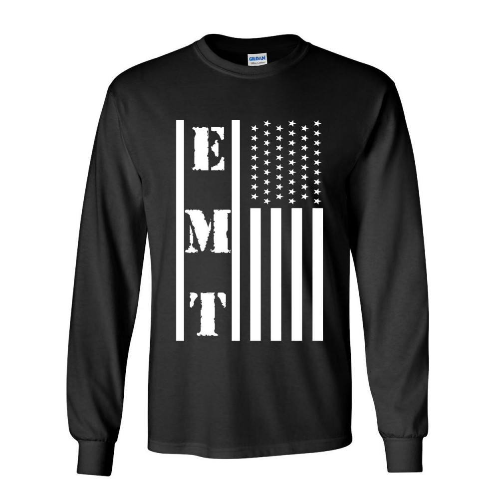EMT STARS AND STRIPES long sleeve t-shirt first responders paramedic ems tee black