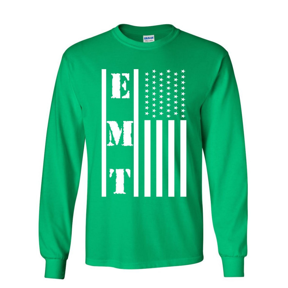 EMT STARS AND STRIPES long sleeve t-shirt first responders paramedic ems tee green