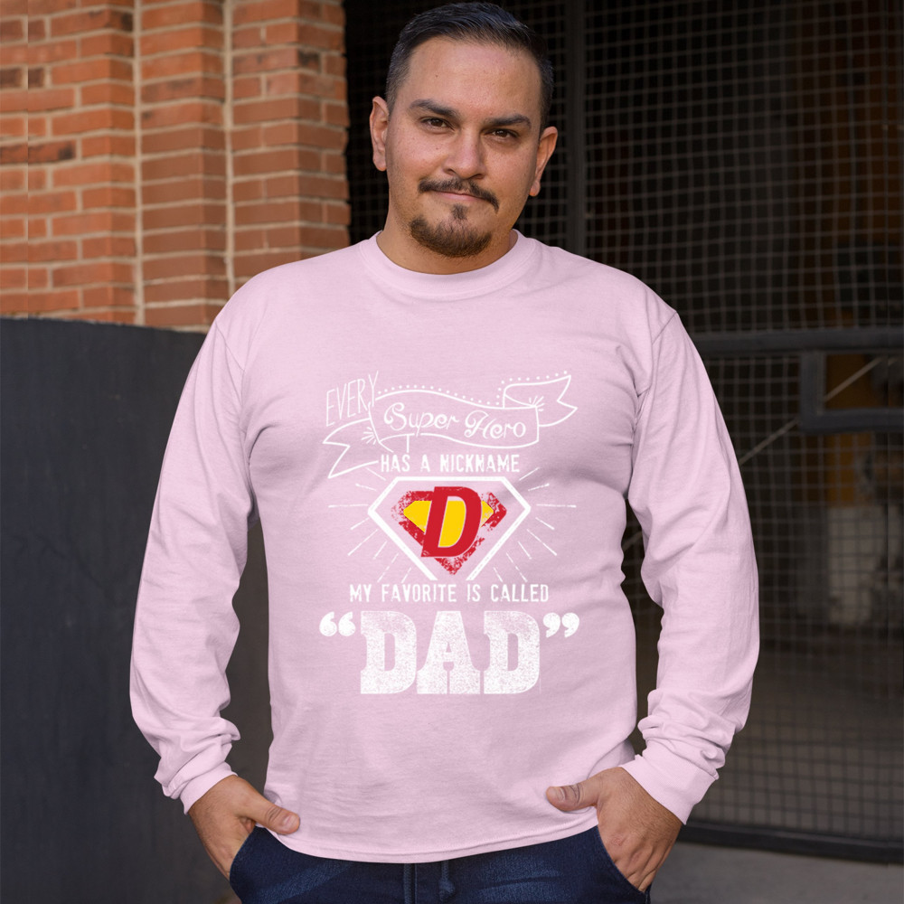 EVERY SUPER HERO HAS A NICKNAME long sleeve t-shirt best dad ever father's day pink