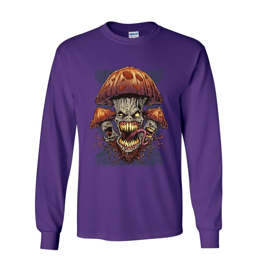 EVIL MUSHROOMS long sleeve t-shirt halloween hallucinations nightmare spooky tee purple