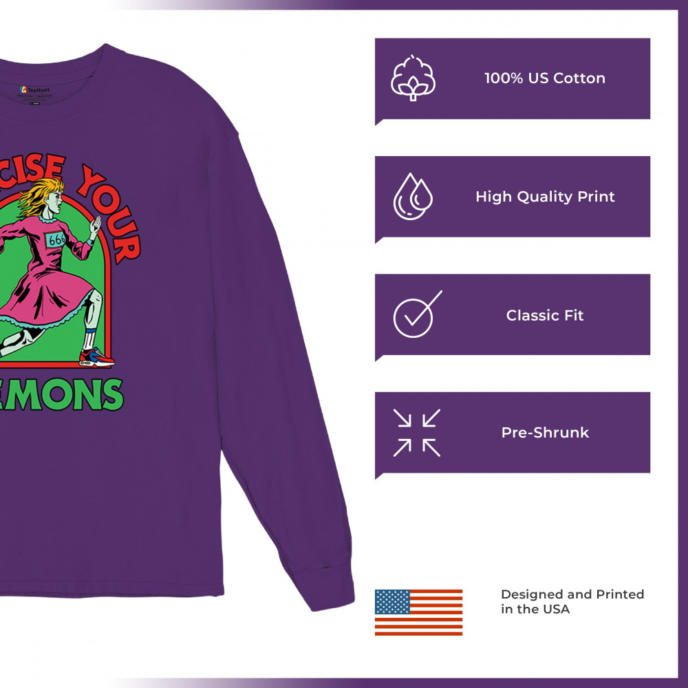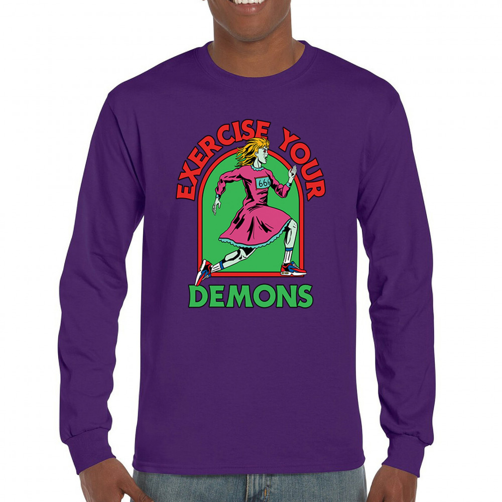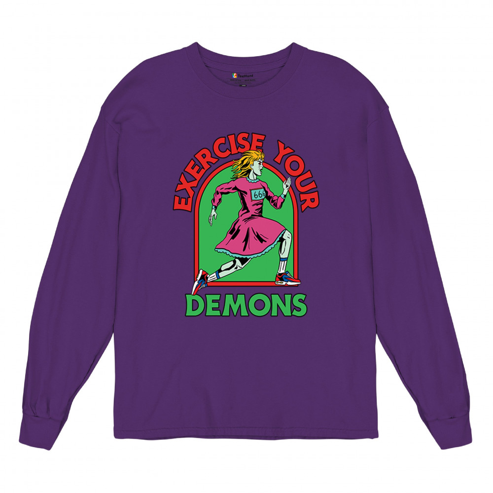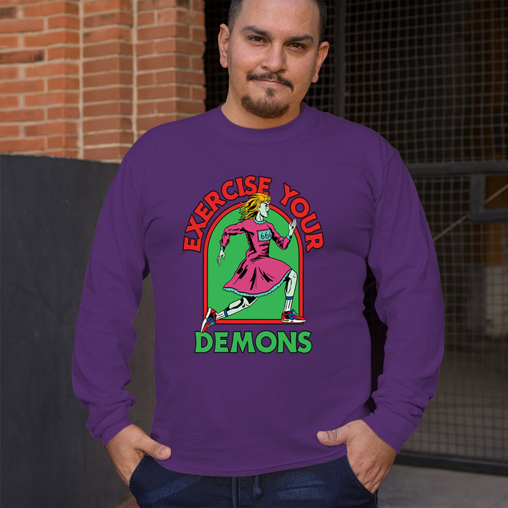 Exercise Your Demons shirt – funny halloween gym shirt with fitness humor, scary workout design, demon runner style, and spooky parody vibes.