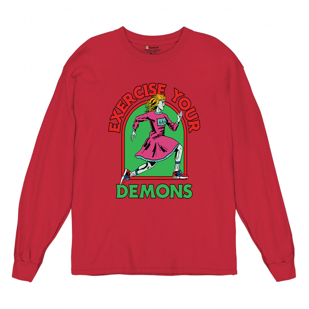 Exercise Your Demons shirt – funny halloween gym shirt with fitness humor, scary workout design, demon runner style, and spooky parody vibes.